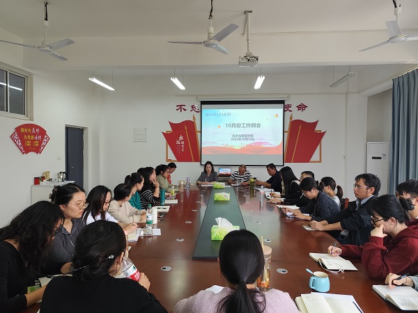 1010日下午,经济与管理学部2号实验楼二楼会议室召开了10月份工作例会学部全体教职工参加,会议由党总支副书记罗铭主持。