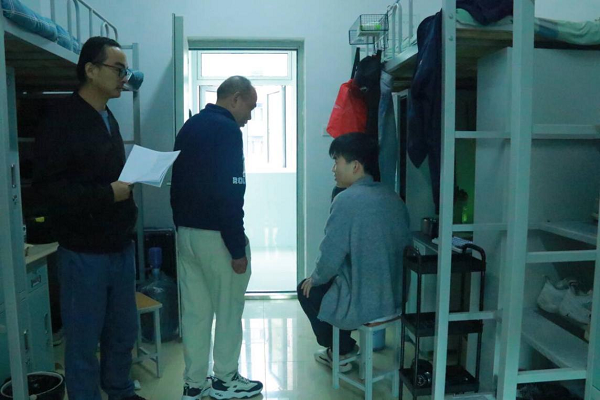 检查工作开展前,罗铭副书记对本次检查工作作了分组部署,并强调了检查的重点。走访期间,检查小组对学生宿舍安全情况进行了细致检查,内容涵盖了是否使用大功率电器、私接电线、乱接插线板、堆放易燃易爆物品、宿舍吸烟、私养宠物等多个方面。针对个别寝室存在的这些安全隐患问题,检查组现场予以指导和批评教育,并要求立即进行整改。同时,在检查过程中,徐燕主任向同学们普及消防安全知识,引导学生树立安全意识,提醒同学们养成用电安全、人走断电的好习惯,共同维护宿舍环境的安全与和谐。