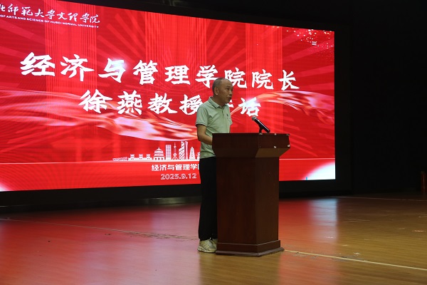 会第一项议程是由经济与管理学院院长徐燕发表致辞。徐院长代表学院对各位同学的到来表示热烈欢迎,并结合学院发展历程与学科特色,向新生们提出“勤学不怠打牢基础,厚积薄发全面赋能,忠诚爱国立志高远,筑梦经管赋能未来”的殷切期盼。他鼓励大家珍惜大学时光,以积极的姿态拥抱新的学习生活,在专业领域深耕细作,成长为有理想、有本领、有担当的时代青年。