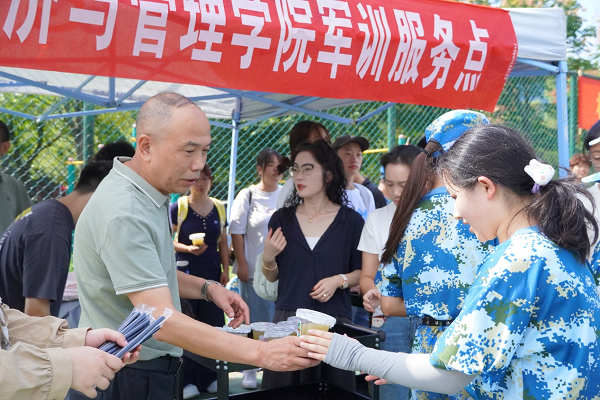 送清凉沁人心,助军训壮士气——经管学院开展“军训送清凉”活动