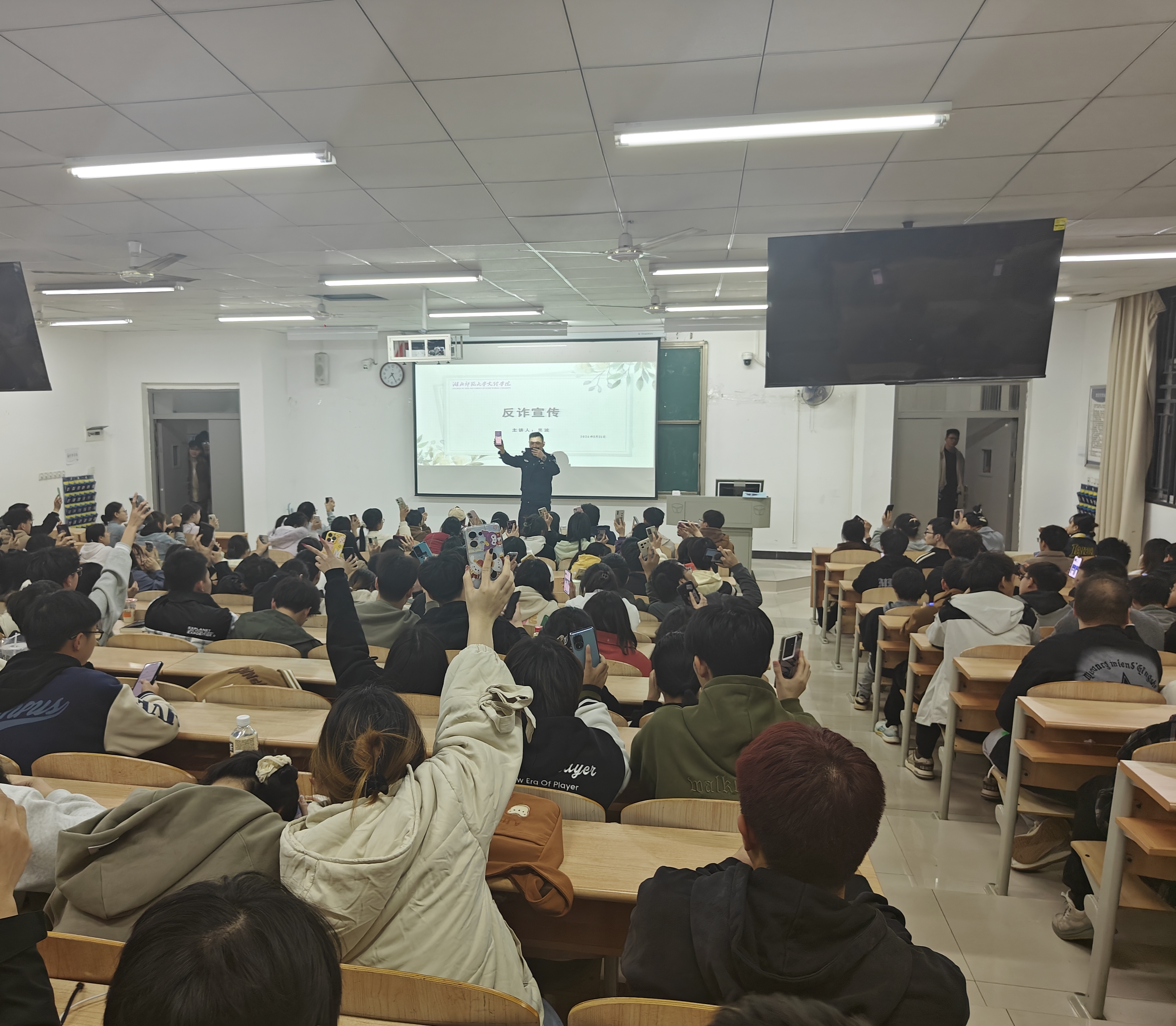 为深入推动米乐官方网页版_米乐(中国)创建平安校园工作,不断提升广大师生防诈意识和防骗能力,3月21日晚上7时,理工学部特邀汪仁派出所民警在教学楼1B-101,为约200名青年学子举行了“反电信诈骗”主题讲座,理工学部团总支副书记李哲昊老师,辅导员刘婉婉老师、胡兰捷老师、陆曦老师参加了活动。
