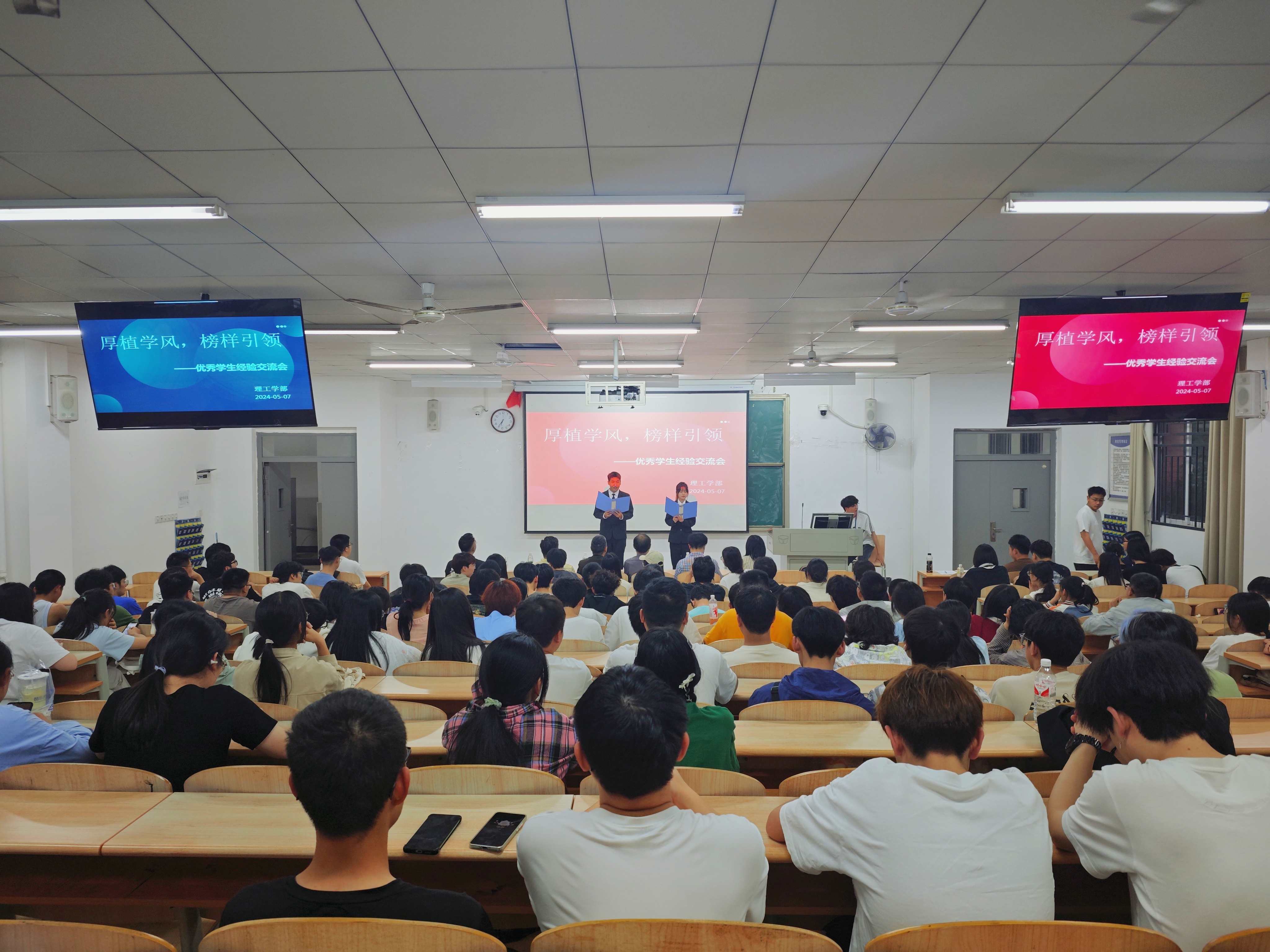 朋辈引领,“职”在未来。57日晚,米乐官方网页版_米乐(中国)理工学部在教学楼举办毕业生就业经验交流会,三位优秀应届毕业生分享了就业、深造方面的经验。
