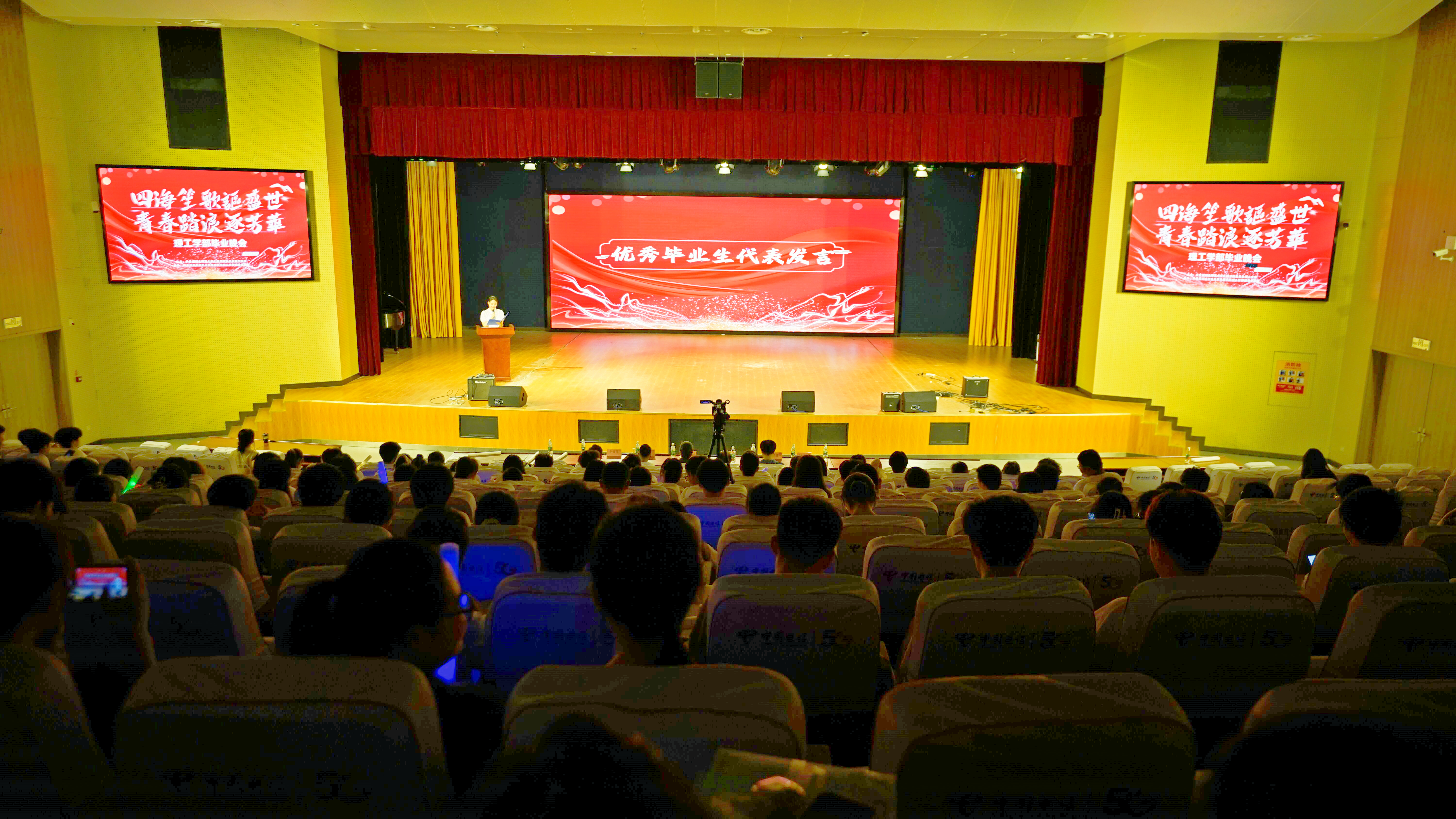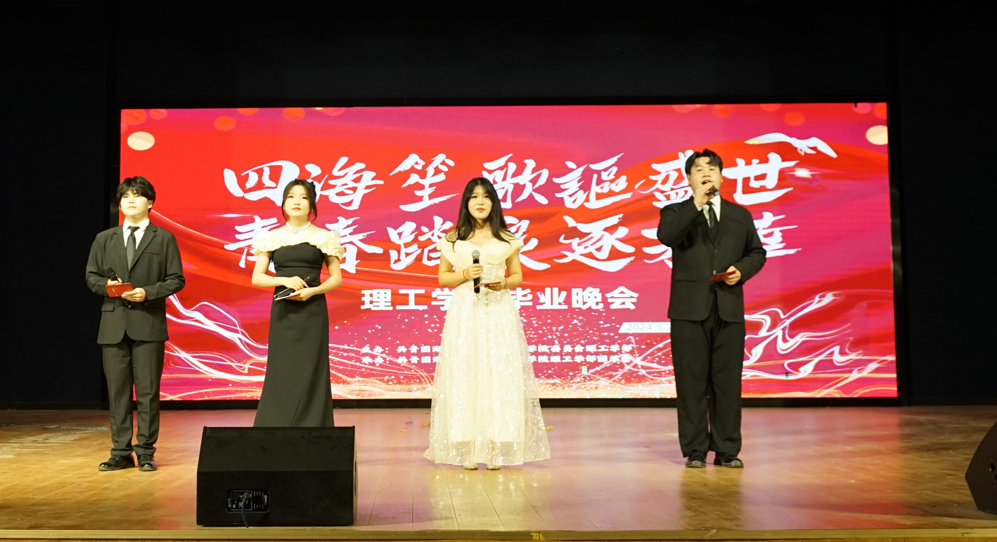 2024年5月29日晚,理工学部“四海笙歌讴盛世,青春踏浪逐芳华”2024年毕业晚会在米乐官方网页版_米乐(中国)学术交流中心举办。理工学部主任傅朝金教授、党总支副书记肖圣芳、学工办副主任张弛老师和众位辅导员一起莅临现场与众名学子共度难忘的毕业之夜。