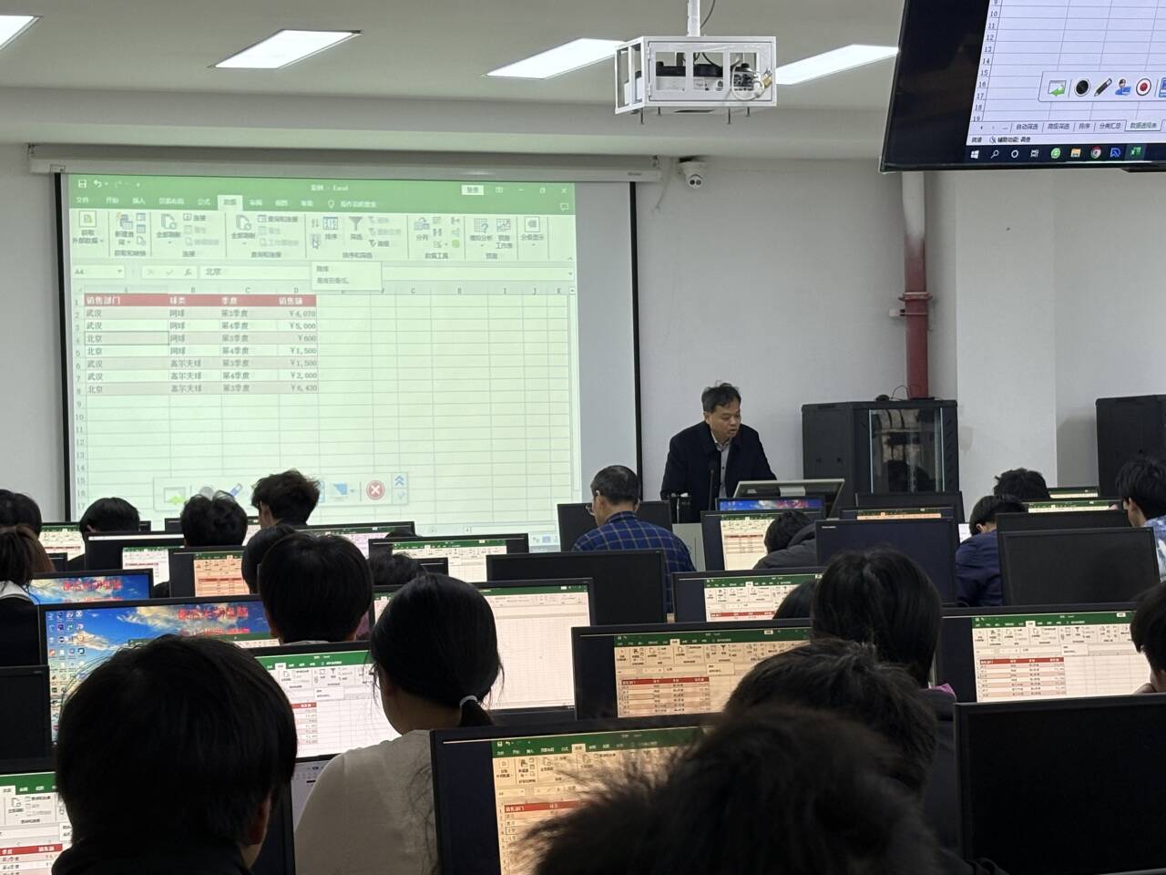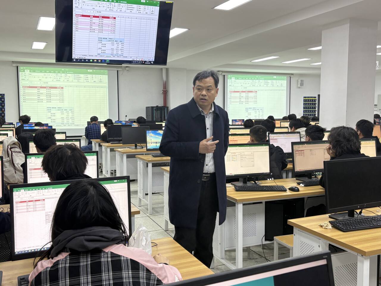 毛教授以“excel表格分析”为主题,通过案例导入、任务驱动和互动讨论等多种教学方法,将理论知识与实际应用紧密结合。课堂上,毛教授通过演示操作、学生动手实践等环节充分调动学生积极性,展现了扎实的专业功底和娴熟的教学技巧。