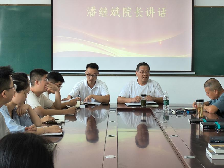 潘继斌院长首先作学院整体规划与发展报告。他指出,作为新成立学院,理工学院当前正处于起步筑基的关键阶段,明确管理架构是前提,强化学科教学是核心,保障学生身心与学业健康发展是根本。目前学院下设四个专业,新生报到情况良好,开局平稳。面对管理经验尚显薄弱、宣传与档案管理有待加强、专业规划需持续优化等挑战,潘院长强调应重点抓好“两头”学生工作,即新生适应与高年级学业发展,实现全程育人。他还通报了学院近期在改善办公条件、规范教学与考试管理、高效完成迎新与入学教育、建立“老带新”传帮带机制、竞赛组织与制度构建等方面取得的进展,并对接下来完善教师信息、加强网站宣传建设、制定教研室计划、推进毕业论文与课程建设、强化学科竞赛策划等作出具体部署。
