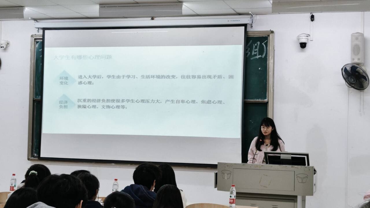 辅导员王老师讲解了大学生常见心理问题的识别与应对,重点介绍“倾听—共情—转介”的朋辈支持流程,强调安全骨干在心理危机预警中的关键作用。