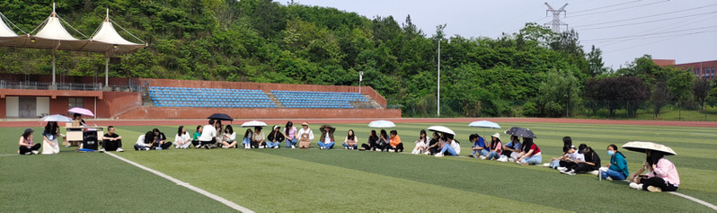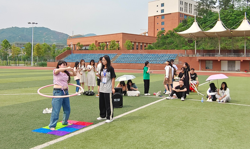 活动共分为三个小游戏,分别是“一穿到底”、“抢板凳”、“动感接力”。由各社团小组成员组成团体进行比赛。每个游戏都需要组员们相互配合、相互鼓励来完成,所以同学们都拼尽全力,认真对待。活动中期,魔术社为大家带来了一场奇幻的表演盛宴,丰富了活动内容,把活动氛围推向高潮。在炎炎烈日进行拓展活动,同学们不仅感受到了太阳的温度,而且感受到了青春的热情活动最后,全体人员合唱歌曲时间在欢声笑语中飞逝,游戏也走近尾声。次拓展活动不仅丰富了同学们的课余生活,带来了很多欢乐和趣味,也让同学们感受到了团队的重要性,学会在活动中放开自我、展现自我奋力拼搏。