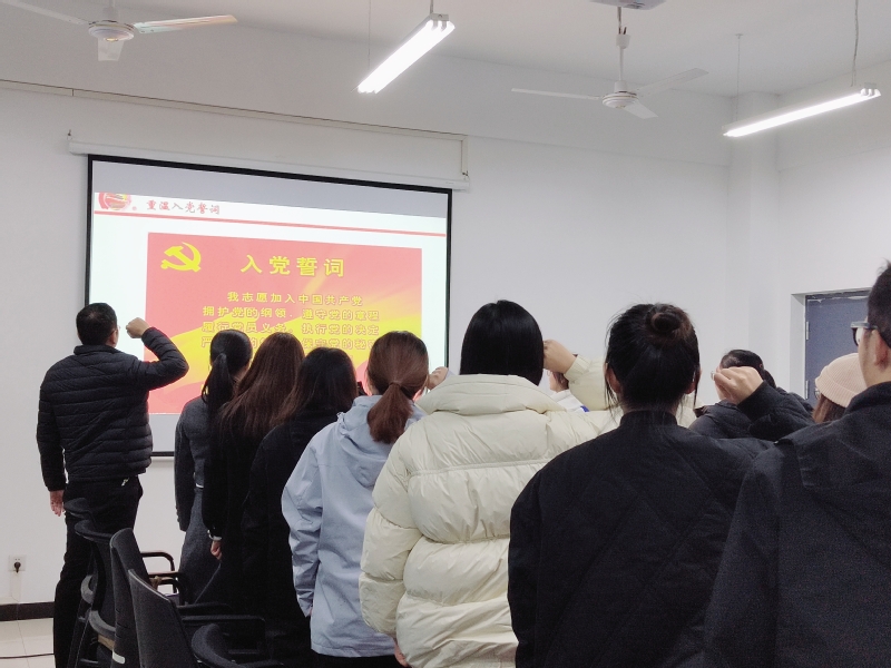郭书嘉同志表态并宣读入党志愿。郭书嘉同志表示:“从提交入党申请书至今,我对党的认识在每一个阶段都有新的提高。道阻且长,行则将至,今后我会更加严格地要求自己,以初心敬党心;以誓言敬理想;以努力敬时光。”