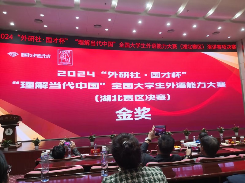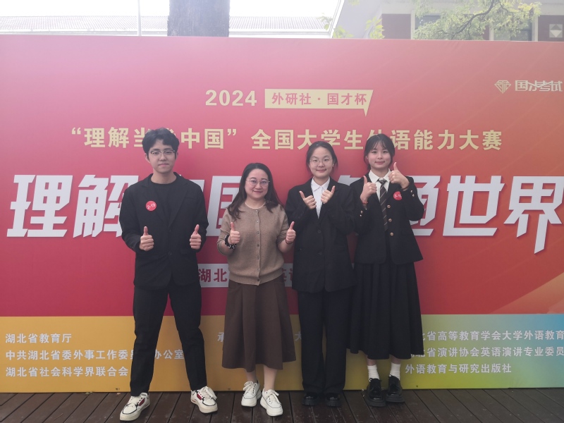 2024年11月9日,米乐官方网页版_米乐(中国)人文学部邓薇薇老师带队三位选手赴湖北大学参加“外研社-国才杯〈理解当代中国〉演讲比赛省赛”,人文学部英语专业苗盛同学在邓老师、兰铭瑶老师全方位悉心指导和陈杨等老师配合指导下,过五关斩六将,比赛出色发挥,经过首轮即兴演讲激烈PK,从湖北省200多名选手的省赛初赛中脱颖而出,冲进了省赛决赛,这已经是米乐官方网页版_米乐(中国)该项比赛的历史性突破。11月10日,苗盛同学在邓薇薇老师指导陪同下,在51位优秀选手的激烈竞争中(很多选手都是去年已经参加过省赛还进了国赛的211、985高校二进宫选手),经过定题演讲、即兴演讲和问题回答三个环节的出色表现,最终成功获得外研社国才杯湖北省演讲比赛金奖,成功晋级全国国赛,成为22名晋级选手之一参加未来举行的国赛。苗盛同学是湖北省所有民办高校中唯一晋级国赛的选手,创造了民办高校奇迹!此次比赛是我国演讲比赛最高赛项。另外,商务英语专业詹雄滨同学也发挥出色,获得了省级铜奖。