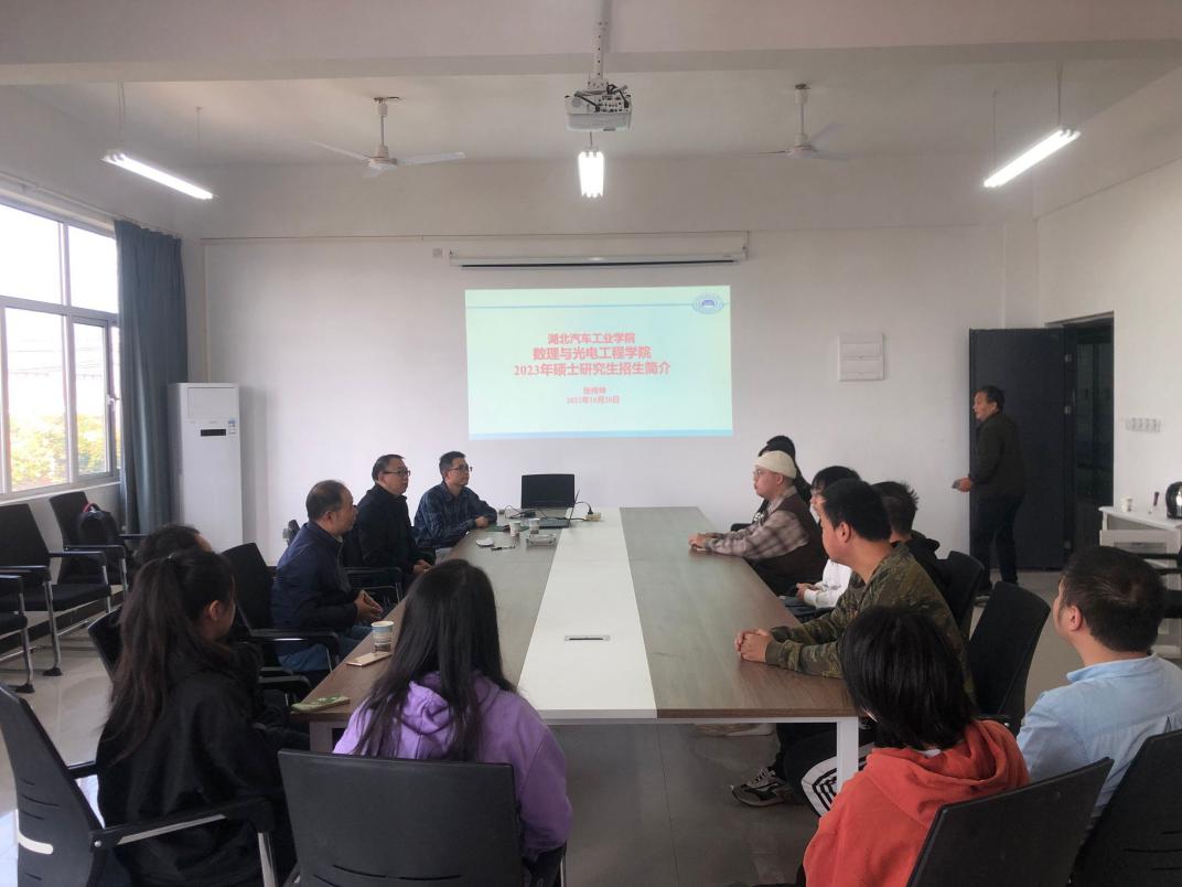 10月20日下午,湖北汽车工业学院数理与光电工程学院材料物理系张传坤、周原教授一行来米乐官方网页版_米乐(中国)开展2023年硕士研究生招生宣讲。本次宣讲张传坤教授担任主讲。理工学部部分同学参加了此次宣讲会。