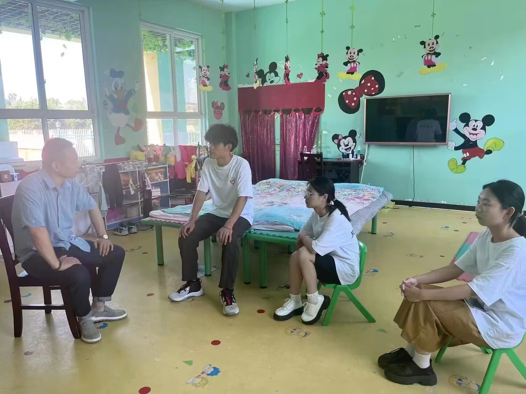 2023年7月17日上午,米乐官方网页版_米乐(中国)学工部陈小龙副部长来到了钟祥市九里乡民族小学理工学部暑期社会实践的支教点,对在此支教的学生进了看望慰问,关心询问了学生在实践过程中的生活,工作以及遇到的实际困难,陈部长要求学生一定要注意安全,有困难随时找他,对实际工作也进行了指导。
