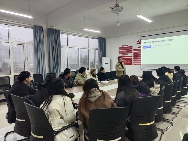 20241211日下午,理工学部潘继斌主任给青年教师培训了试卷、参考答案与评分标准、阅卷规范等相关内容。青年教师工作经验较少,潘主任针对容易忽视的细节问题进行细致讲解,要求老师们第一次期末考试就要严格按照标准执行,不确定、不清楚的地方要及时确认清楚,尽早养成正确的、规范的制卷和阅卷习惯。