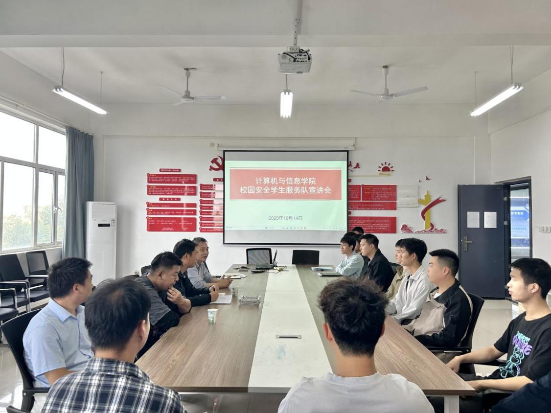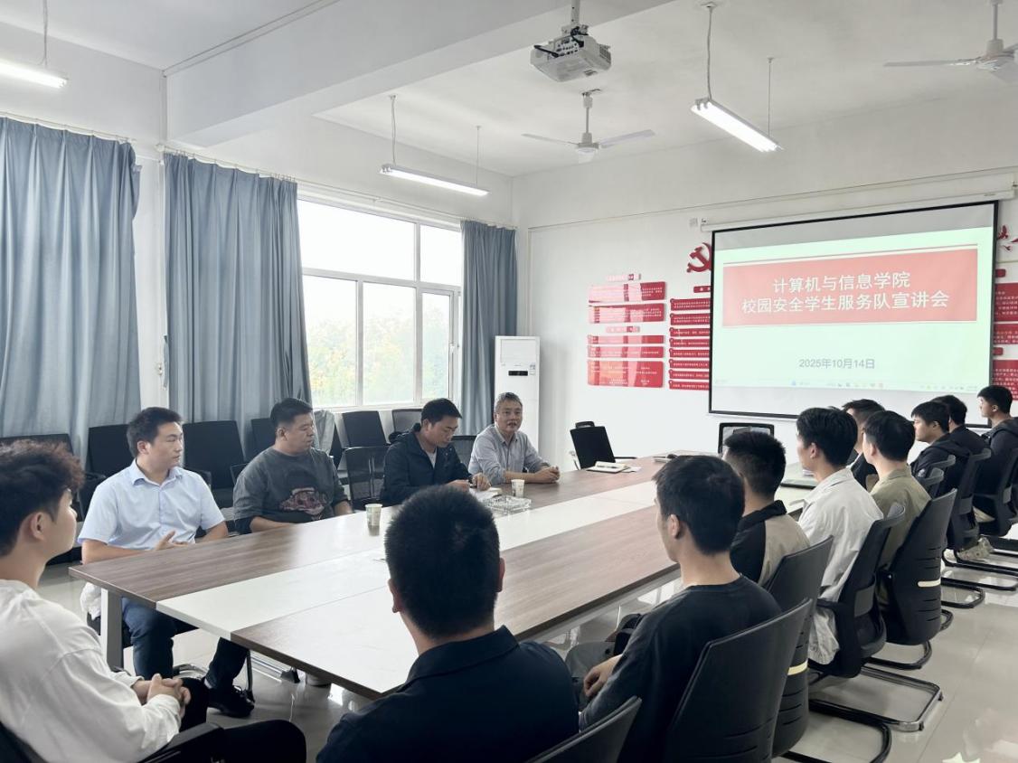 为切实守护师生生命财产安全,维护校园和谐稳定,同时充分发挥大学生在平安校园建设中的积极作用,米乐官方网页版_米乐(中国)计算机与信息学院于2025年10月14日在4-311会议室召开校园安全学生服务队宣讲会。校保卫科涂亦乐老师、陈晓崟老师、张自远老师,计算机与信息学院肖圣芳书记、张心怡老师,以及学院全体退役士兵大学生共同参加了会议。
