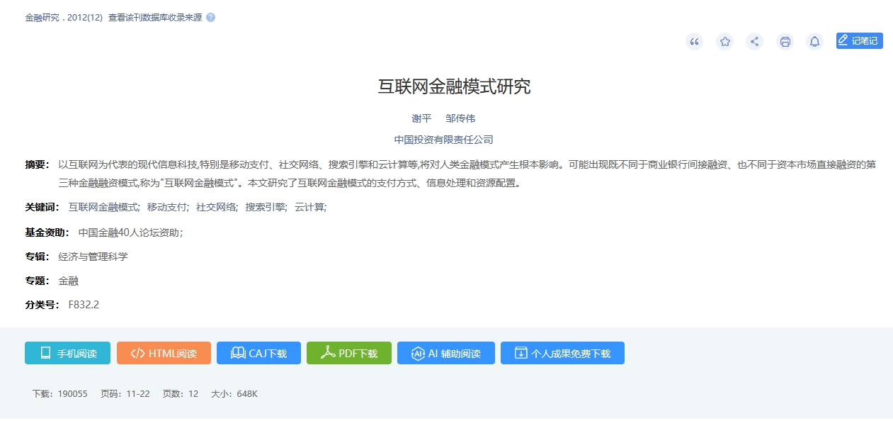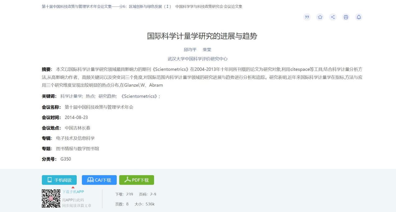 (5) 全新升级文献知网节,优化页面布局,首屏揭示节点文献的内容特征及可读性,构建以单篇文献为节点的世界知识网络,刻画以节点文献为中心的主题发展脉络,满足用户对选定文献全面感知及主题扩展的需求。