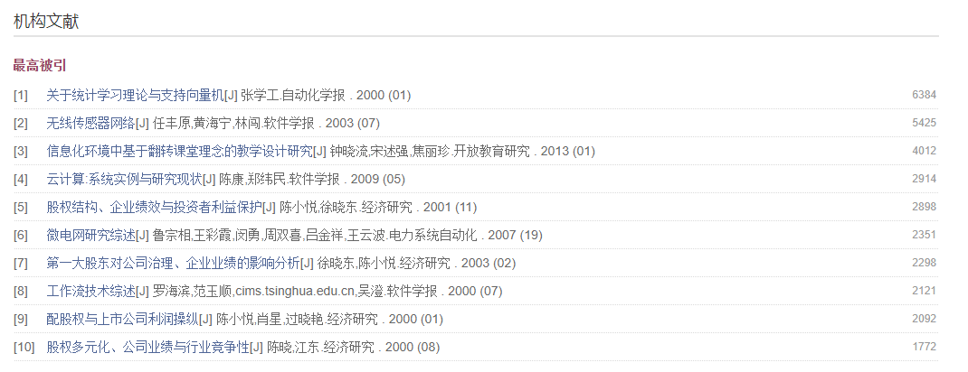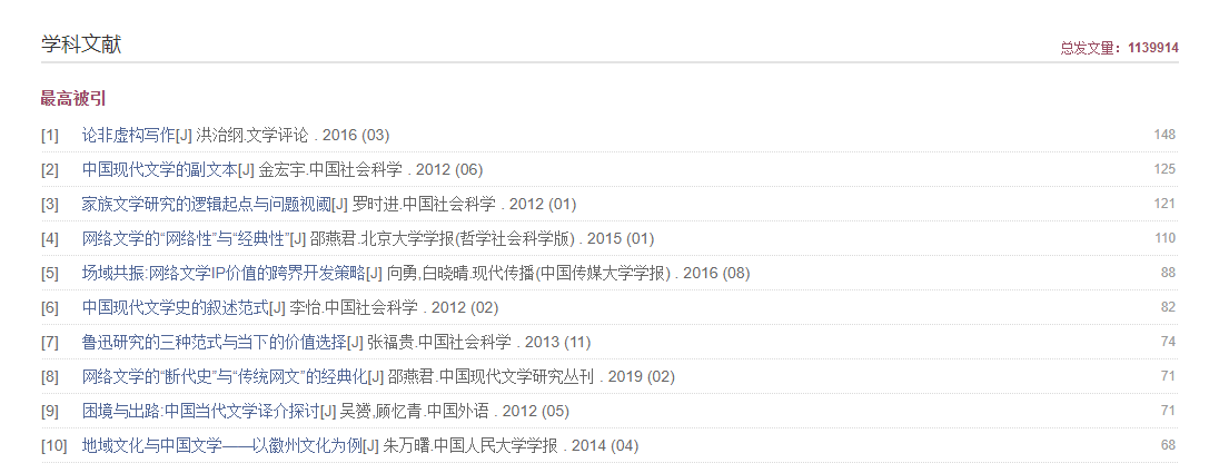 大部分分组项的内容按文献量排序,部分分组项采用特有的排序标准,分组同时进行权威性推荐。