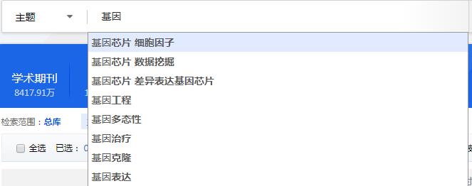 在平台首页选择检索范围,下拉选择检索项,在检索框内输入检索词,点击检索按钮或键盘回车,执行检索。见图2.1.1.2。