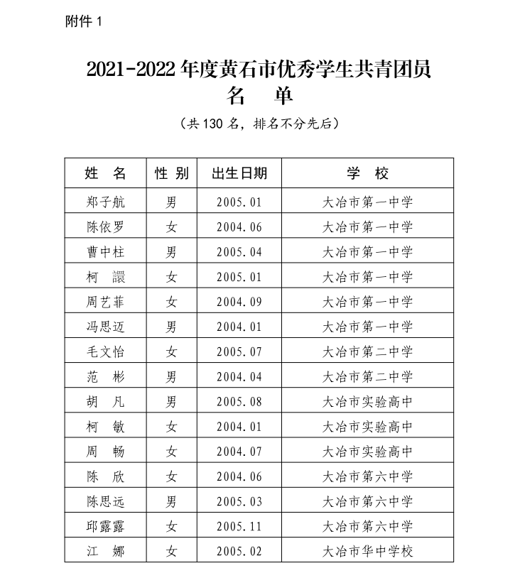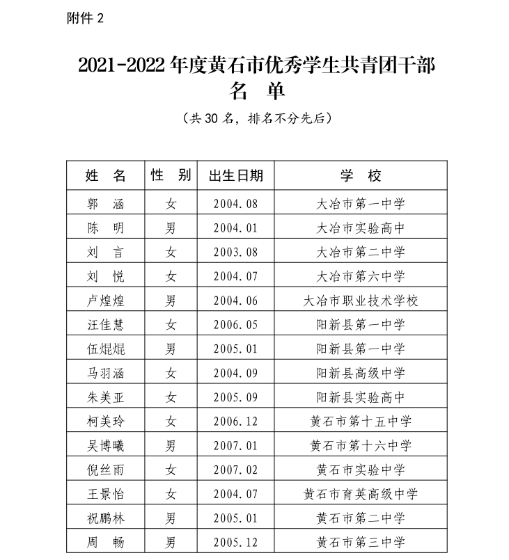 关于表扬 2021—2022 年度黄石市优秀学生 共青团员和优秀学生共青团干部的通报