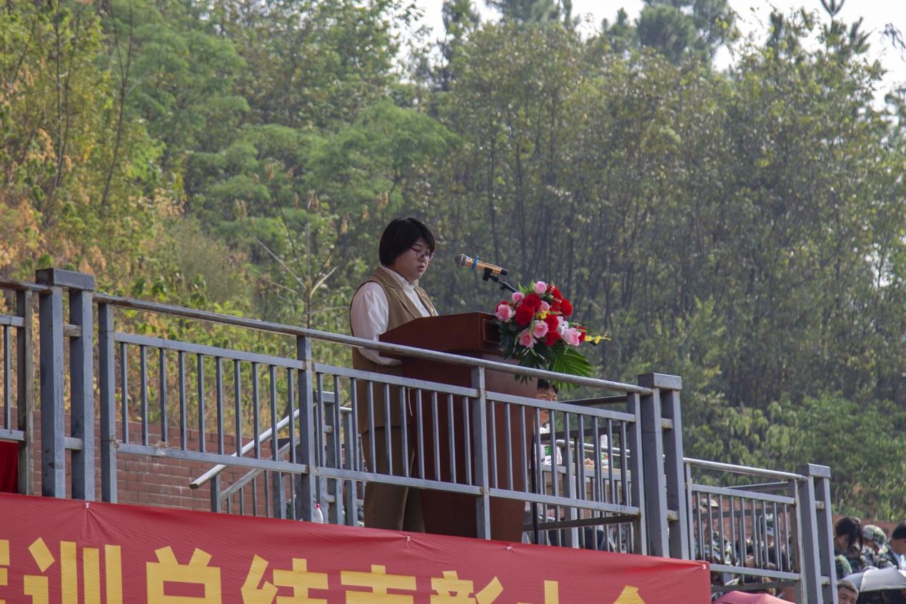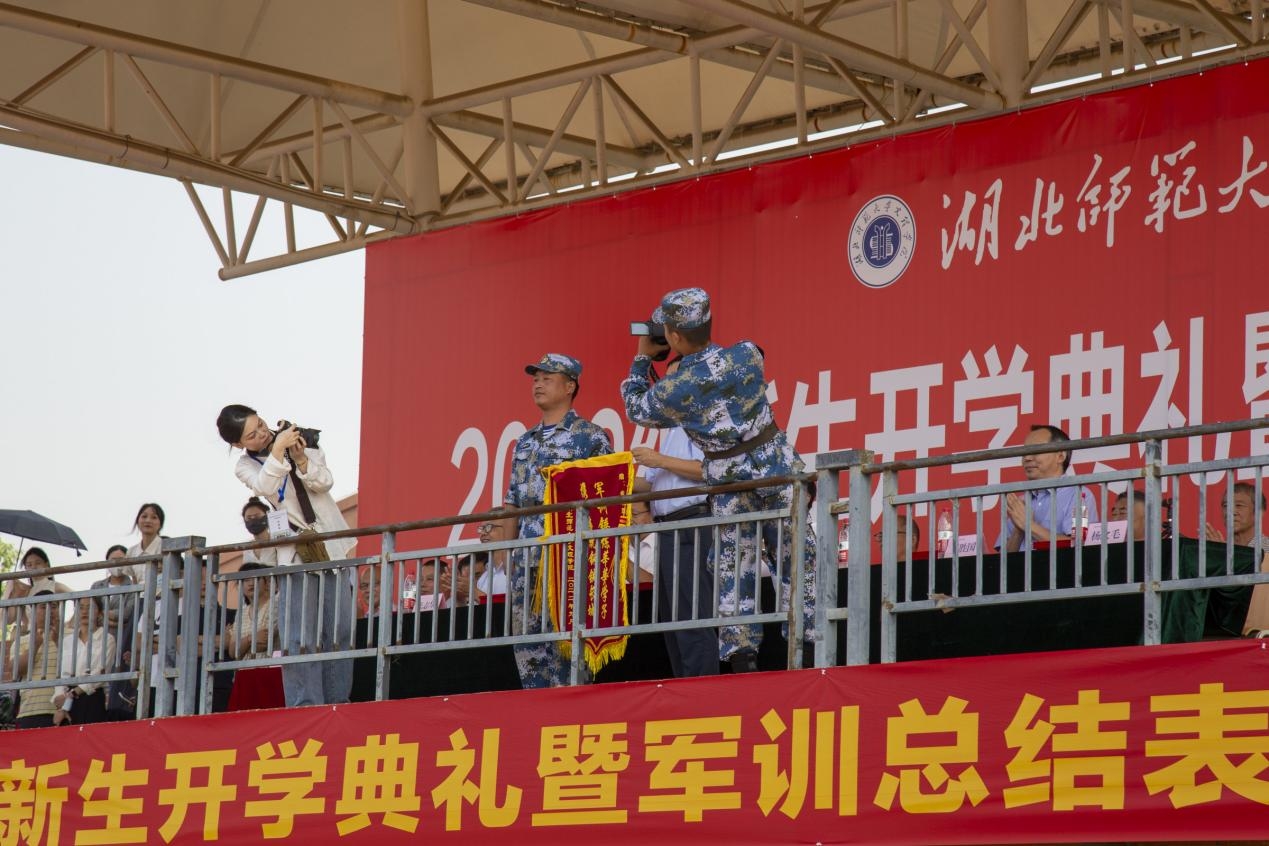 常务副院长杨学斌教授向承训单位授予锦旗,党委书记杨邓红教授宣读2022级新生军训表彰决定,为新生军训先进个人及先进集体颁发奖项。