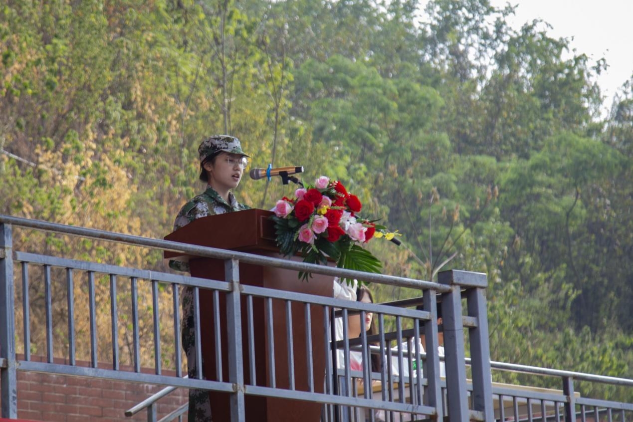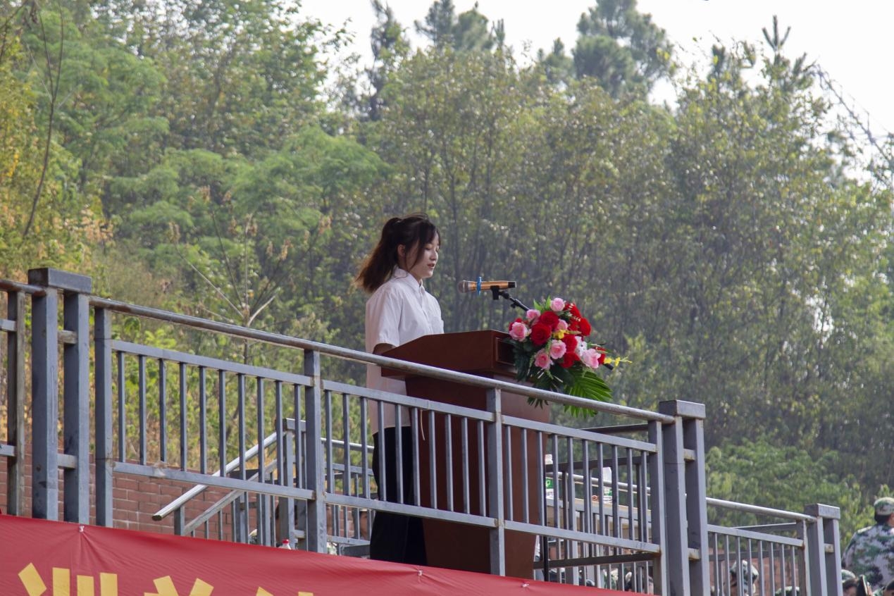经管学部2022级袁钰婧同学代表新生发言,她分享了进入大学以来的所见所感和十天军训的体会,对广大新生提出三点倡议:一是树立远大理想,笃行致远;二是学好专业知识,练就过硬本领;三是砥砺意志品质,矢志创新创造。同时,她呼吁同学们既要读“有字之书”,也要读“无字之书,争当实干家,将小我融入大我,在奉献中展现新时代青年的责任。