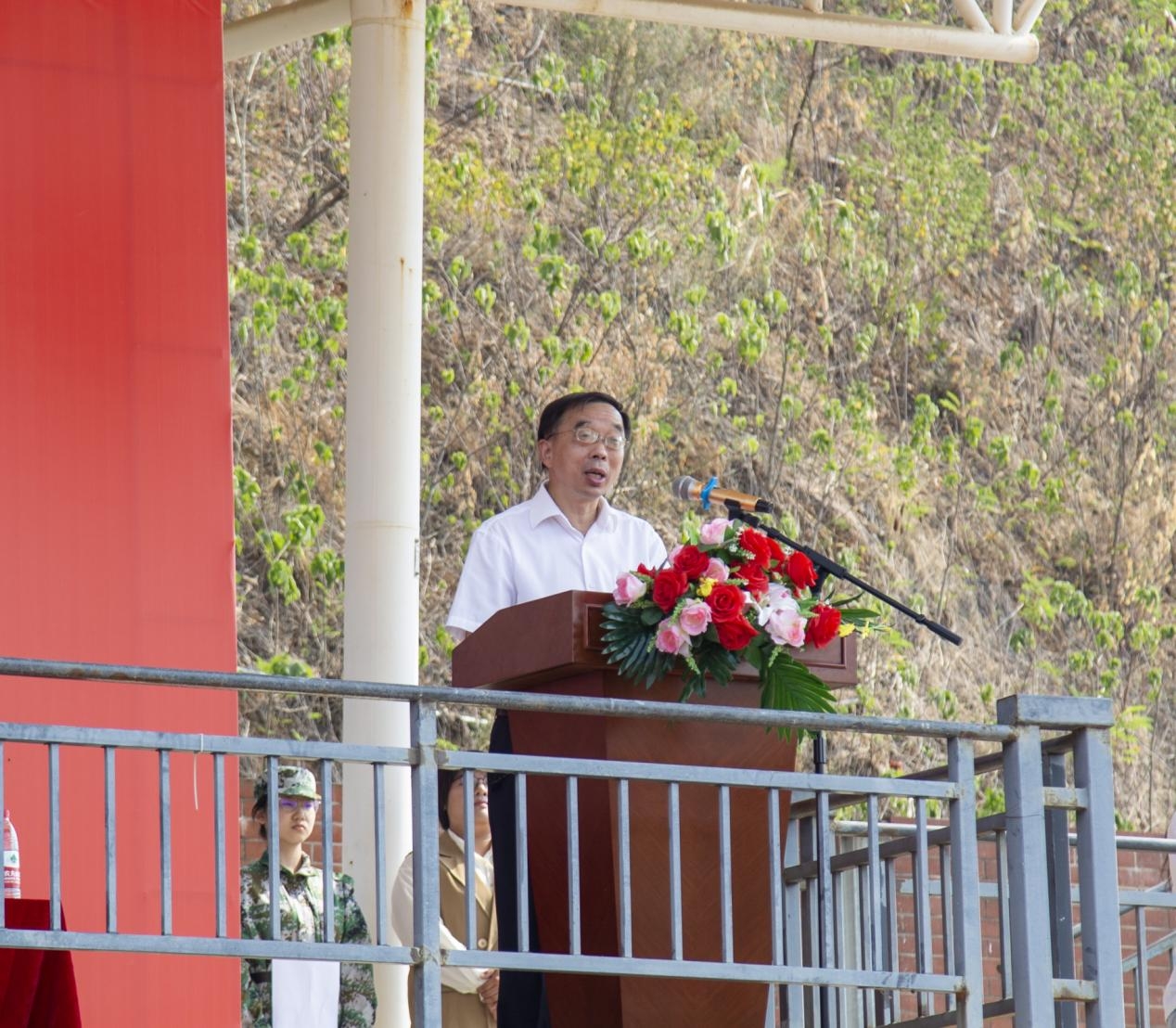最后,校长李开灿教授发表讲话。他代表全校师生员工向来自16个省份的3869名新生表示热烈的欢迎。他充分肯定了此次军训成果,对指导军训的全体教官表达诚挚的感谢,回顾介绍了文理建校以来的历史沿革和办学成就,提出把握三度、永葆三心、淬炼三力的三个要点,“三度”是把握思想的高度、把握认识的深度、把握处事的气度,“三心”是永葆矢志不渝践行使命的初心、永葆砥砺前行勇担的进取心、永葆立身立学为先的恒心,“三力”是淬炼过硬的思辨能力、淬炼坚定的执行能力、淬炼坚韧的自制能力。同时,李开灿教授希望同学们能够在大学中练就过硬的本领,清晰理想目标,勇于开拓,学有所得,达成自己人生的理想,交出一份无愧于青春、人民、国家的答卷!