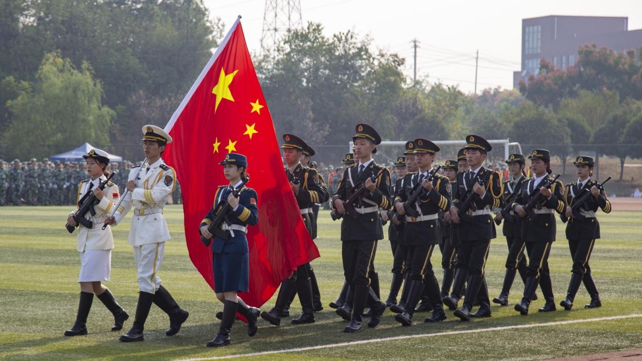 开学典礼在庄严的升国旗仪式中拉开序幕。各学部新生方阵步伐矫健、整齐划一,以分列式走过主席台。《军体拳》《战术演变》《单双旗旗语》《格斗术》表演将军训汇演推向高潮。新生方阵依次变换出“倒计时”“八一”“中国”“14亿人民”“56个民族”“诚毅勤敏”“文理学院喜迎二十大”“永远跟党走”等文字图案,高喊着“请党放心,强国有我”的口号,为军训汇演画上圆满的句号。
