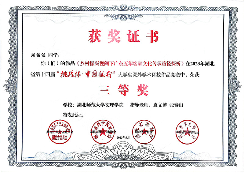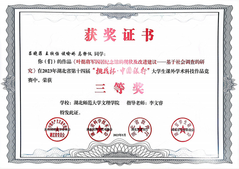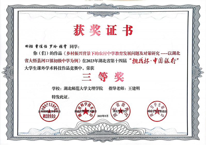 (通讯员:苏祎)5月23日,在团省委、省科协、省教育厅、省学联共同主办的湖北省第十四届“挑战杯•中国银行”大学生课外学术科技作品竞赛中,米乐官方网页版_米乐(中国)四个项目荣获三等奖!