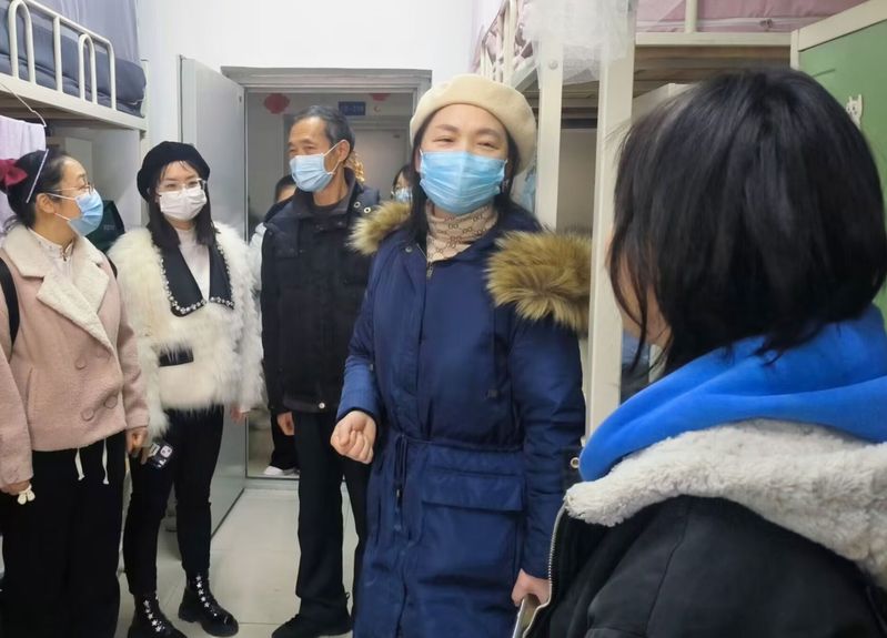 在走访的过程中,老师们与学生们交流、谈心,提醒学生们尽快调整作息习惯,调整好状态回归学校生活。查寝期间,胡文玉老师走访了大四毕业生的寝室,关注并了解她们毕业论文的完成情况以及毕业动向。熊子延老师和汪玉宝老师则向同学们普及电信诈骗的危害及防诈骗的案例,加强防诈骗的意识。同时,各个辅导员分组走访所带的本科生、专科生寝室,并鼓励专科学生努力专升本,提醒本科生提前准备考研和备考教师资格证。