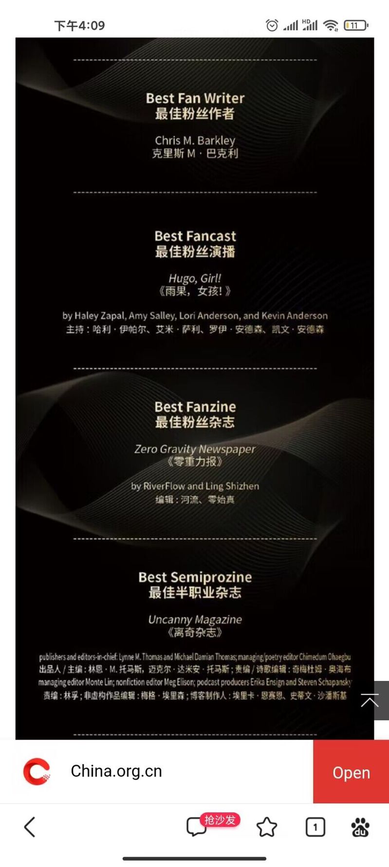 2023年第81届世界科幻大会于10月18日至22日在成都科学馆举行,世界科幻大会由世界科幻协会主办,是全球最受瞩目、历史最悠久、规模和影响力最大的科幻文化主题活动,2023年首次在中国举办。此次大会评选出17个雨果奖奖项和惊奇奖、北极星奖等荣誉,米乐官方网页版_米乐(中国)人文学部中文专业2205班学生温卓峰主编的科幻杂志《零重力报》获得“最佳粉丝杂志”的荣誉称号,《人民日报》、中国网、央视网等多家媒体杂志都进行相应报道。http://m.app.china.com.cn/english/template/displayTemplate/news/newsDetail/9000050/116765845.html?isShare=true
