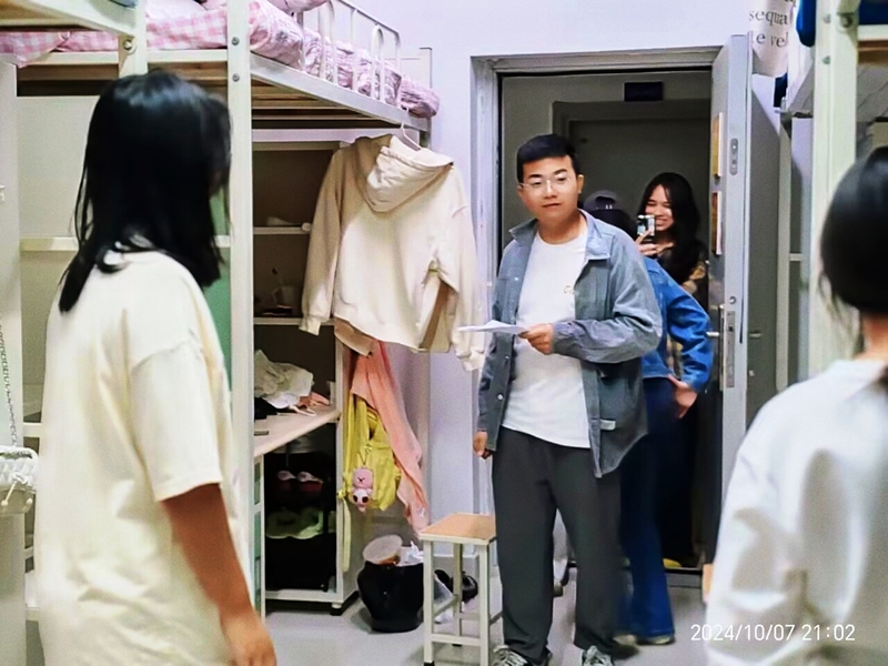 晚上19时——22时,人文学部辅导员老师们分别在宿舍楼进行查寝,详细记录了各宿舍的到寝情况,并与学生们亲切交流,了解他们的假期生活与学习计划。辅导员老师们强调:国庆假期虽然给大家带来了放松,但学习仍需保持持续性,以便更好地迎接接下来的课程与考试。