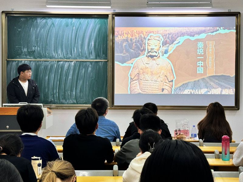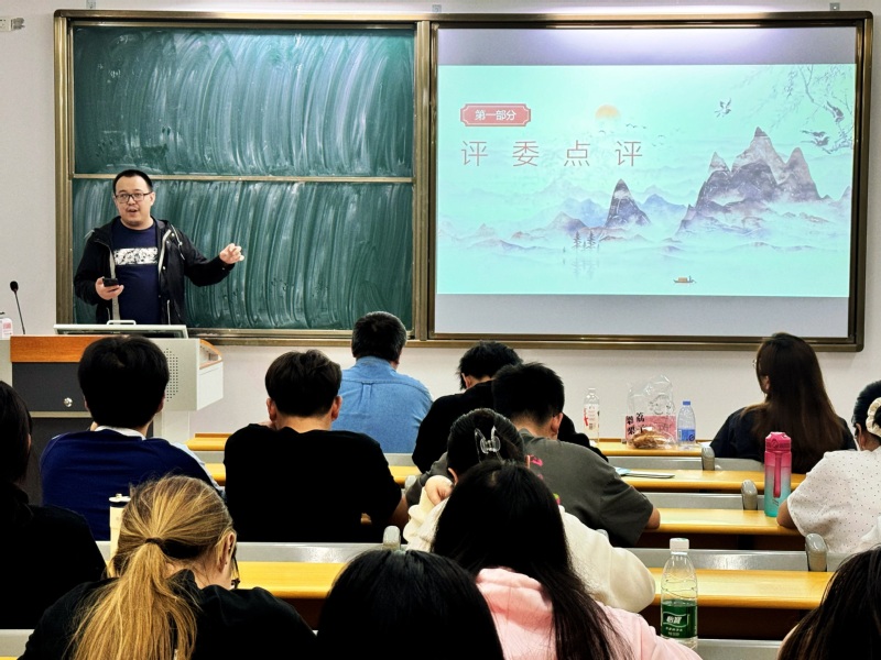 历史学专任教师李紫玫、李文睿、袁文博三位老师担任历史组评委,选手围绕“文艺复兴”“隋朝的统一与灭亡”“百家争鸣”等中外历史主题展切入,结合时间轴、疆域图、文献史料等多维素材,系统梳理历史进程,融入唯物史观与辩证思维。他们不仅展现扎实的史料考据能力,更通过“历史与现实对话”,诠释“以史育人”的教育理念。李文睿老师在点评中强调:“历史教学要平衡形式与内容,避免PPT喧宾夺主。他肯定选手们“结构逻辑清晰、史料运用规范”,同时寄语同学们在未来教学中更注重“历史解释的深度”,帮助学生树立正确的历史观。