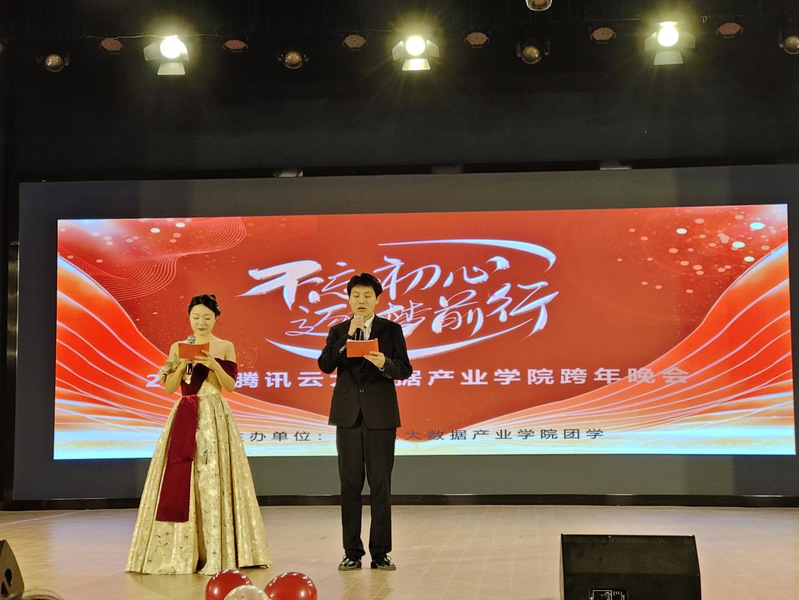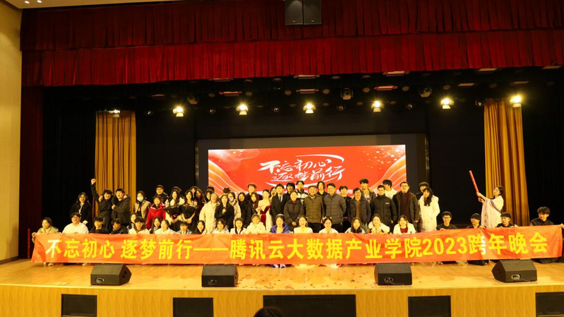 辞旧迎新千帆过,继往开来万木春。12月25日晚,腾讯云大数据产业学院于2023年12月25日18:30在学术交流中心举办了以“不忘初心,逐梦前行”为主题的跨年晚会。特邀请了产教融合学院程永山院长,产教融合学院党总支书记周书记,以及全体腾讯云大数据产业学院师生共享这欢乐气氛和视听盛宴。