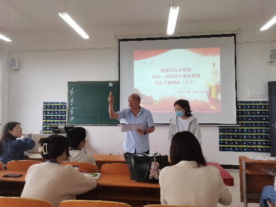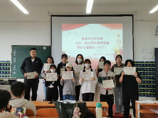 三、请学前教育专业2022年手工艺术作品展下周必须完成,请相关辅导员、专业教师以及班级负责人做好展示工作,请团学会配合完成2022届毕业生晚会节目选送工作。