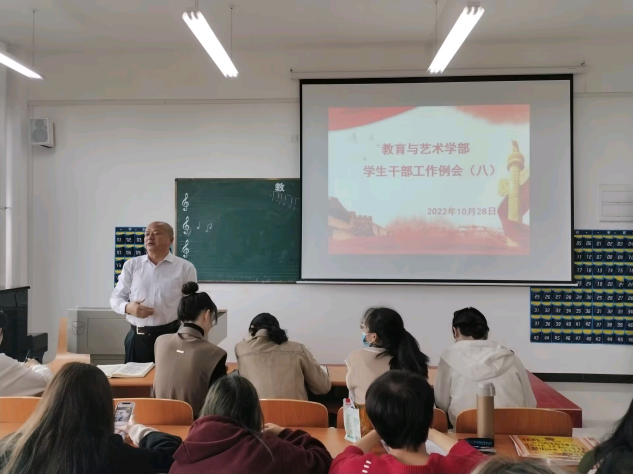 20221028日中午1200,在实验楼1-403多媒体教室组织召开学生干部工作例会。学部各辅导员、全体团学会干部及各专业班级负责人到会,工作例会由总支书记李先华主持。