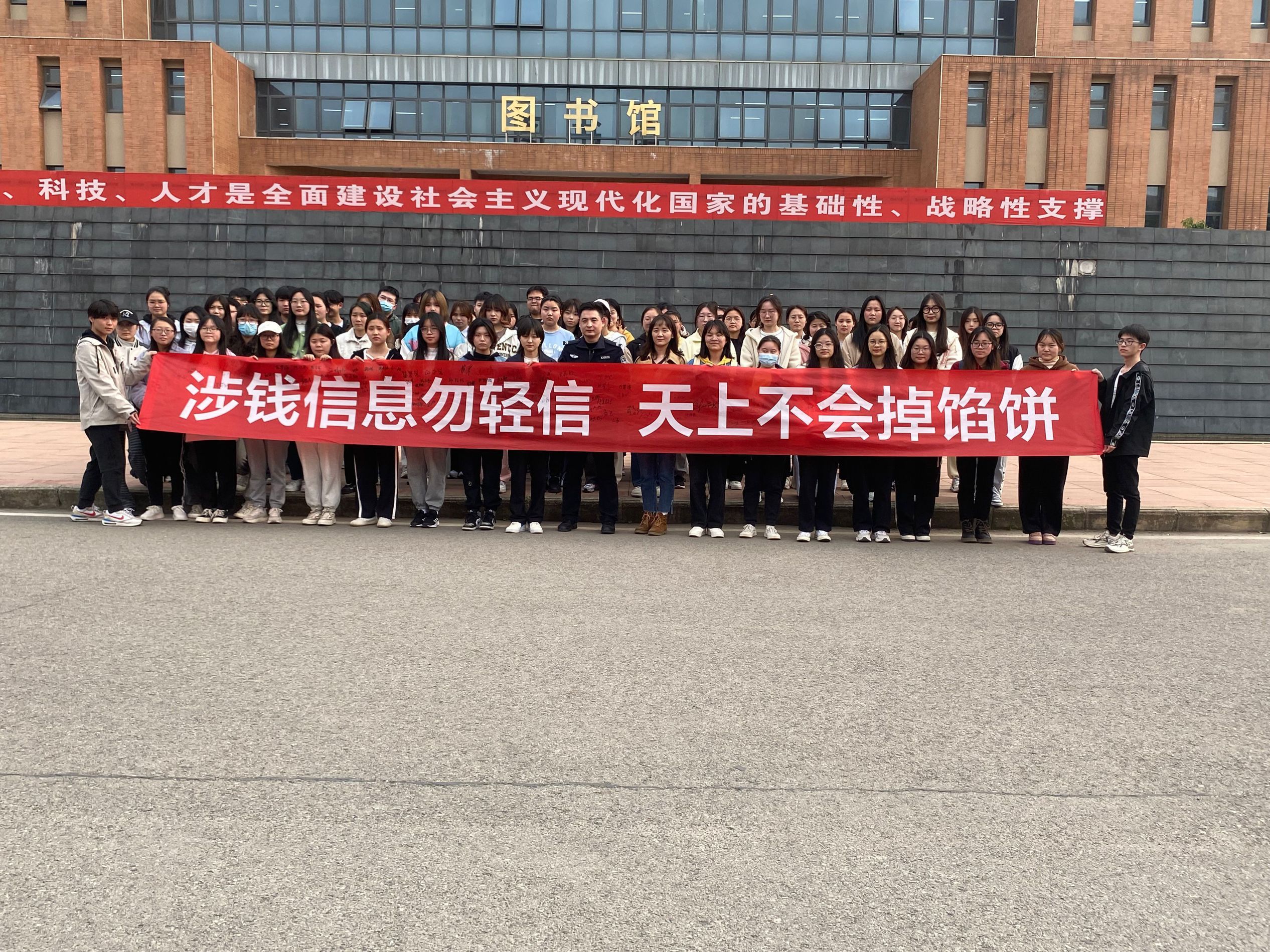 程林老师结合校园发生的鲜活案例,从大学生被诈骗的原因、防诈骗班会的目的、防诈骗班会的意义以及常见的诈骗类型四个方面,深入浅出地讲解了电信诈骗网络防范知识,通过案例与防范方法相结合的方式,详细分析了校园中多发的诈骗类型,让反诈知识深入人心。同学们踊跃发言,分享自己及身边亲友的诈骗经历,让大家更加深刻地认识到诈骗手段的复杂性,提升了识别诈骗手段的能力。班会结束后,同学们纷纷在涉钱信息勿轻信,天上不会掉馅饼的横幅上签名,表明了他们在今后的学习生活中做到“不刷单、不裸聊、不在小平台交易、不接陌生电话”的决心。