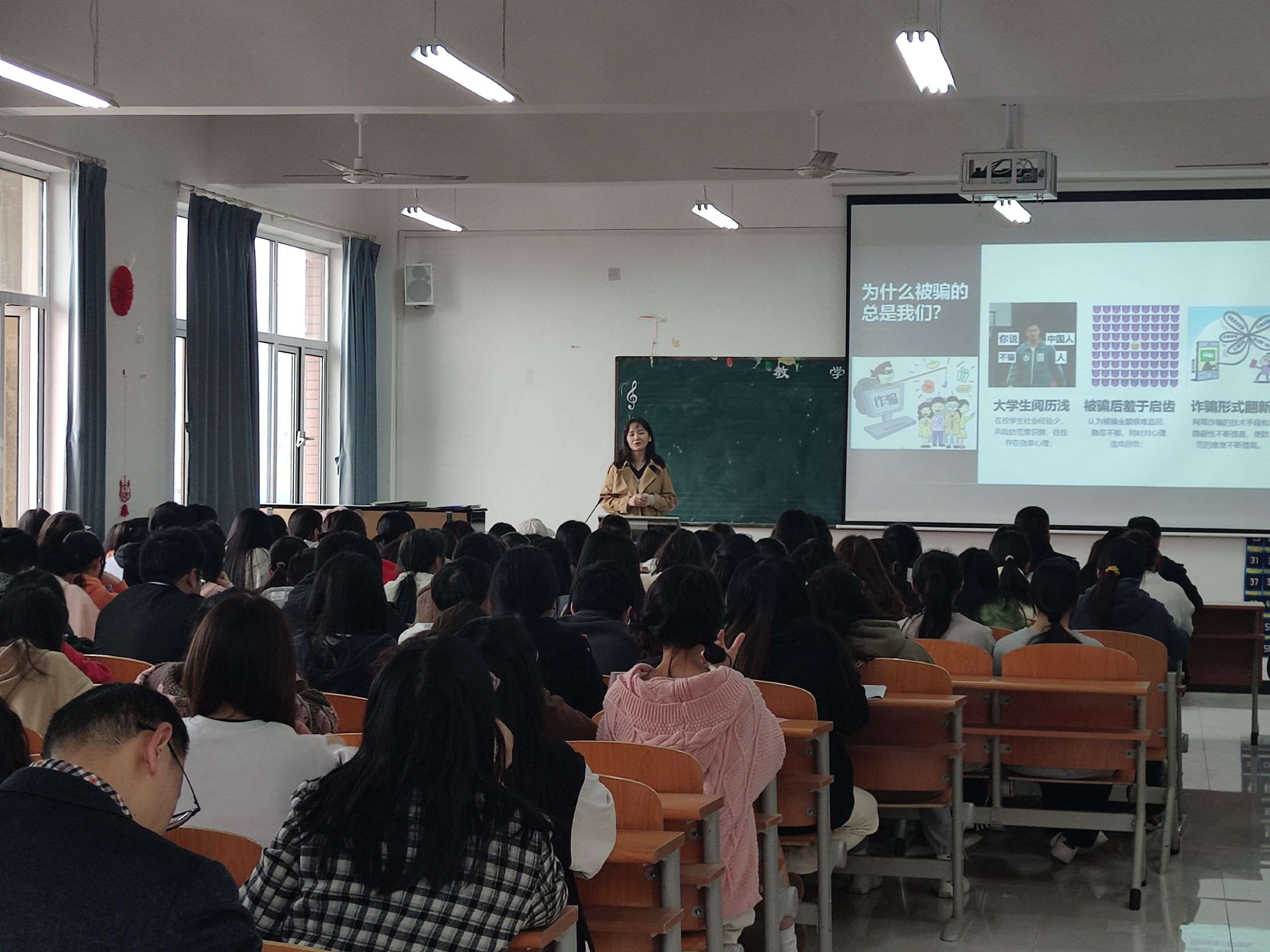 为切实筑牢电信诈骗防线,进一步树立师生防诈意识,杜绝电信诈骗案件的发生,2023371430,按照学生工作部的安排,教育与艺术学部在实验楼1-401开展“反诈”主题示范班会,本次班会特邀请汪仁派出所民警和各学部辅导员及学部各专业班级学生代表参加,主题示范班会由辅导员程林主讲。