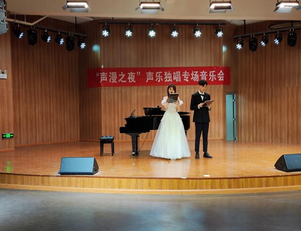 在文理学院即将迎来转设的关键之年,在春暖花开的美好季节,为丰富校园文化生活,提高音乐专业学生声乐技能,检验学生在阶段性期间的学习效果,教育与艺术学部于2023年4月3日19:00在学生活动中心三楼音乐厅举办了大学生艺术节之“声漫之夜”声乐独唱音乐会,学部主任王文和党总支书记李先华应邀参加此次音乐会。