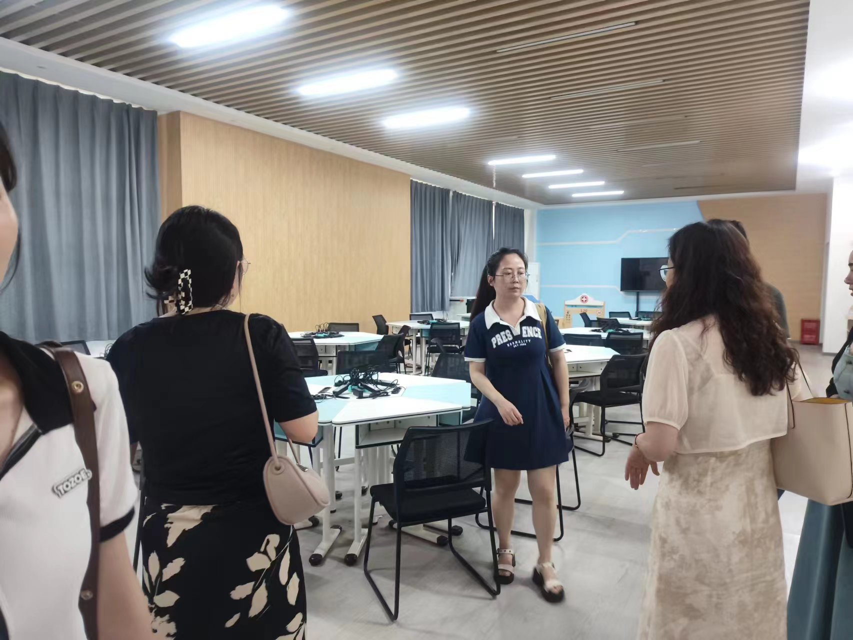 2023年6月29日,湖北仕腾教育集团管理有限公司执行董事、党委副书记乔卫云及教研园长一行来米乐官方网页版_米乐(中国)教育与艺术学部考察交流。文理学院教务部副部长胡敏、学部主任王文教授及学前教育专业负责人李璐等老师参加。双方就学前教育专业学生实习实训、毕业生就业、高校专业教师入园指导、幼儿教师能力提升等内容进行交流。会后,集团公司领导在专业教师的带领下参观了学前教育专业的6个专项实训室,对米乐官方网页版_米乐(中国)学前教育专业的培养理念、办学条件和教师团队给予了高度评价。