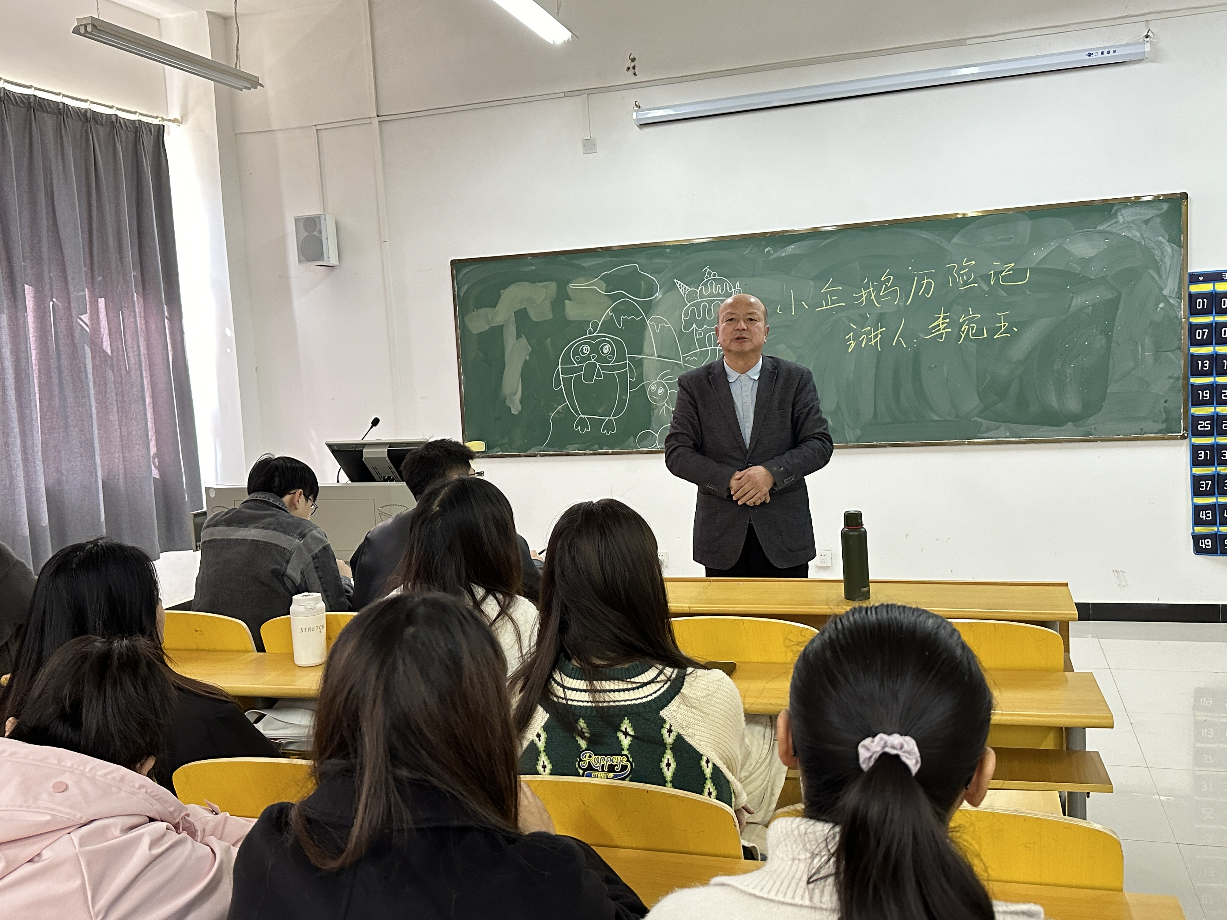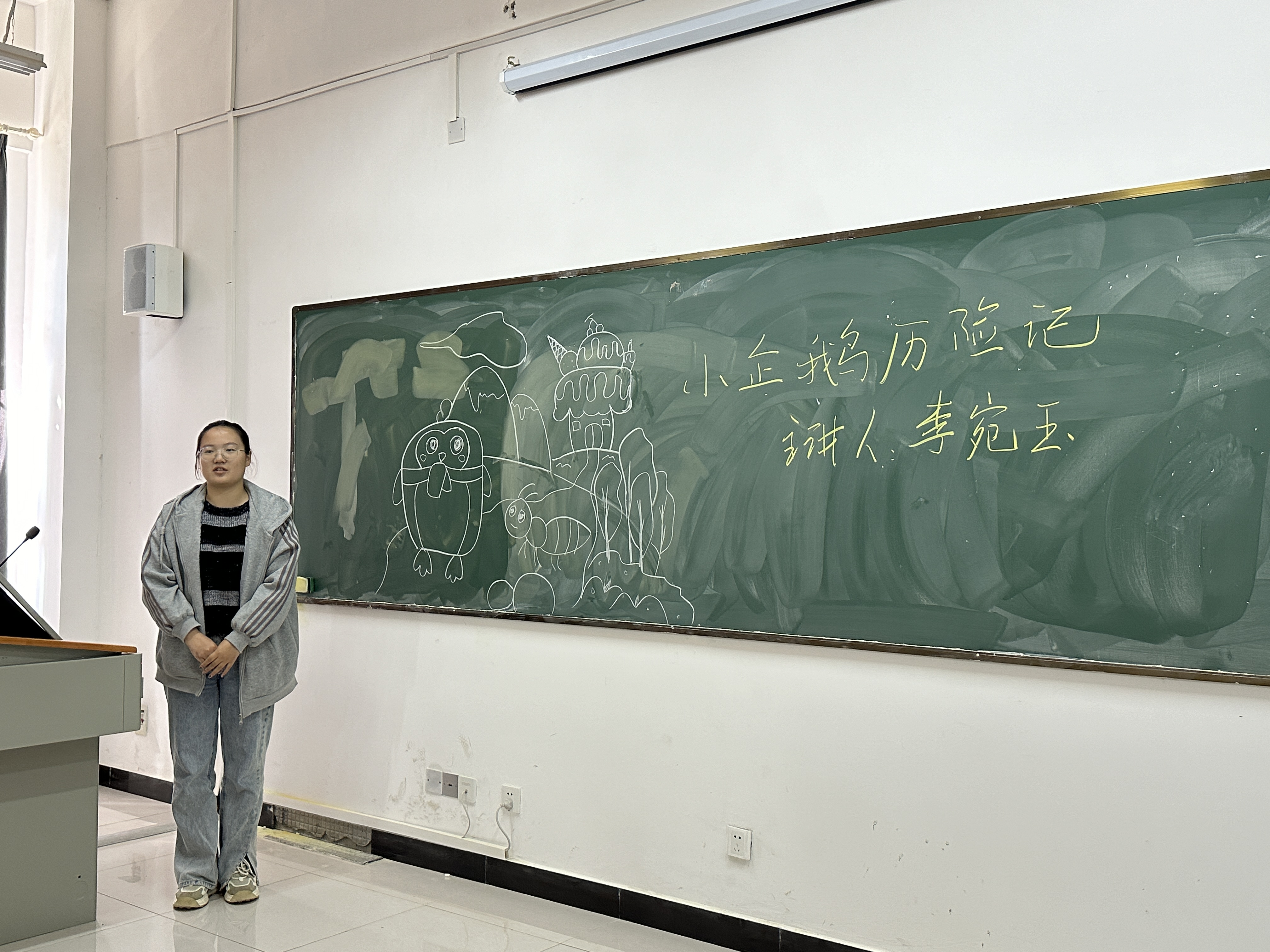 2024年3月26日上午9:50,在教育与艺术学部党总支书记李先华的带领下,全体辅导员走进学前教育专业2201班“课前十分钟”的课堂。李宛玉同学结合专业特色挑选了《小企鹅历险记》的故事,配合绘画进行展示,视听同享,流露情感,为课堂注入了活力。“纸上得来终觉浅,绝知此事要躬行”,同学们通过不断的练习,将所学知识转化为实际行动,促进了自我能力的提升。活动结束后,李先华对同学的表现进行了细致点评:“经过长期训练打磨,同学们有了明显进步。学前教育专业要将课前十分钟这一特色活动持续有效的进行,利用好课前十分钟,为活跃课堂教学创设佳境。”