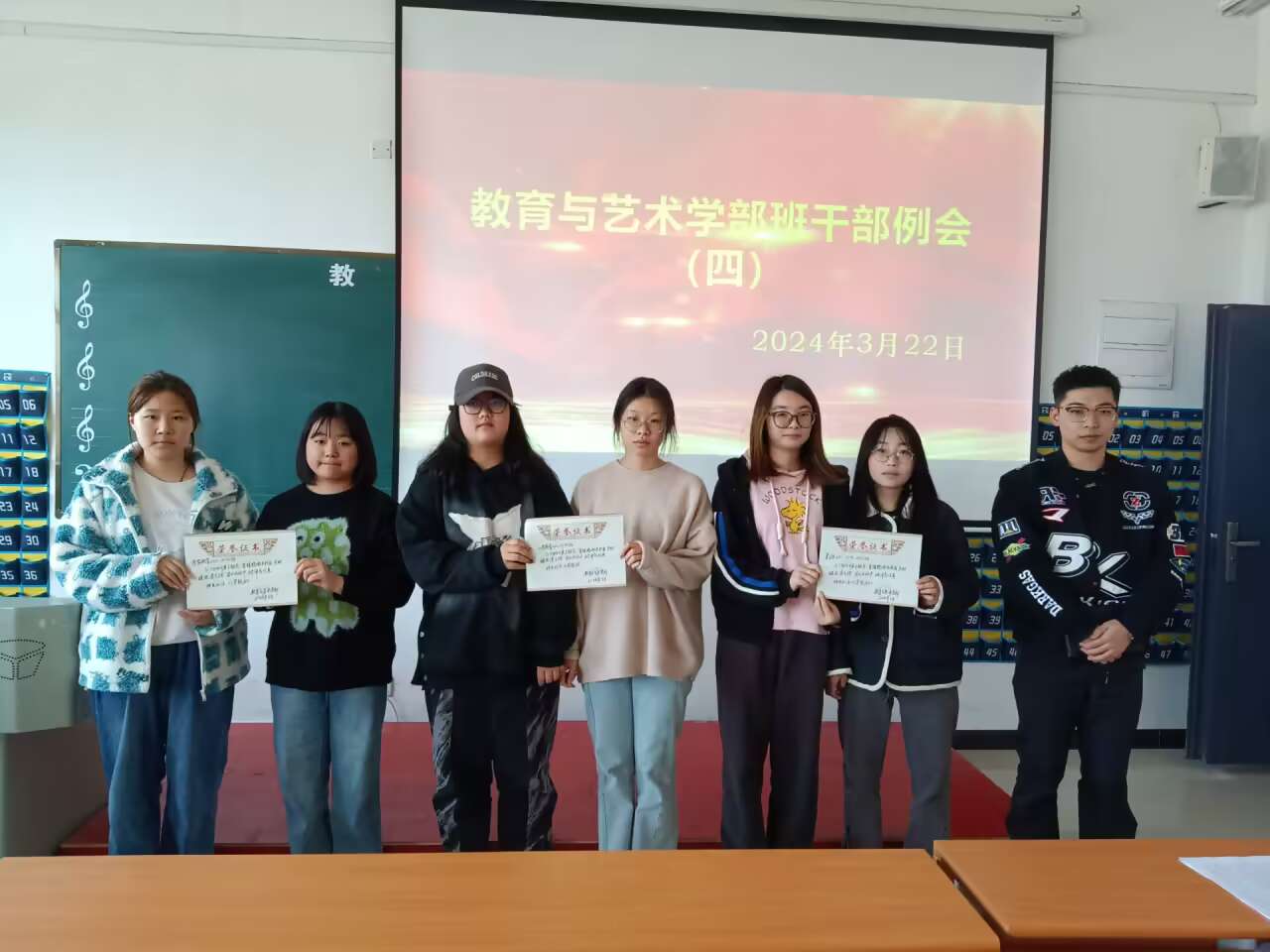 1.本周按院团委工作安排,2023级各专业班级开展题为“雷锋精神传校园,互助暖流漾文理”主题团日活动。小学教育2301、2302班,学前教育2301、2302班,美术学2301、2302、2303班在主题团日活动评比中被评为优秀,对获奖班级颁发证书。