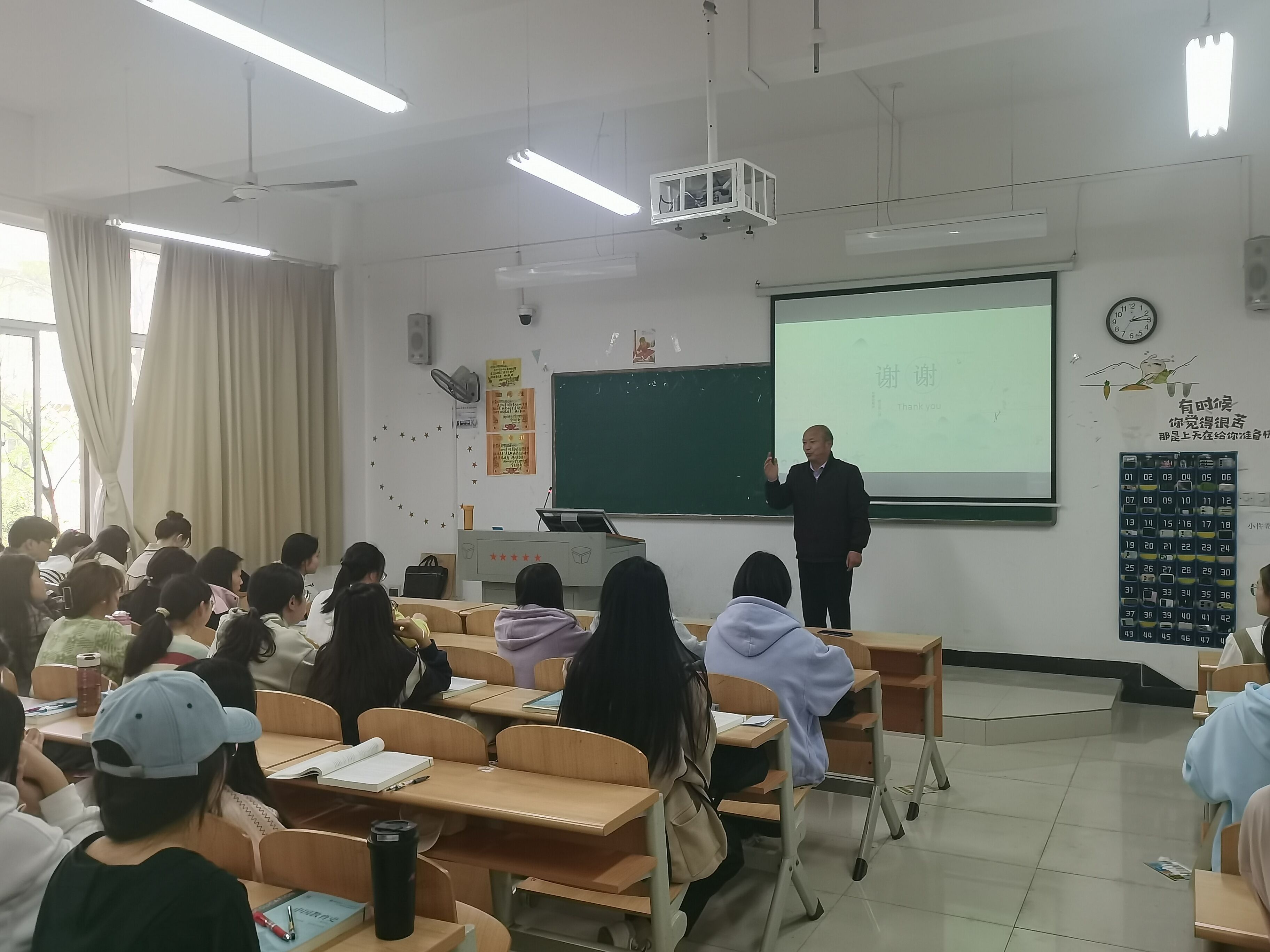 为规范课堂教学,提高师范生的综合能力,2024年4月9日14:00,教育与艺术学部党总支书记带领全体辅导员赴教学楼1A-206深入小学教育2301班的“课前十分钟”课堂。小学教育2301班的向静同学给大家带来了模拟授课诗人李白的《静夜思》。该同学充分准备了授课内容,以小学儿童自身发展规律为授课依据,讲解诗词通俗易懂,课堂互动积极,效果很好。总支书记对课堂的组织和学生的授课技能水平提出高度肯定,以及班级管理提出表扬,希望师范专业学生勇于走上讲台,把握每一次锻炼机会,同时在大一时期就要有奋斗目标、有长远规划,坚定理想信念,在考研、考编、考公等多领域做好提前谋划,在就业岗位上更好成为一名四有好老师。