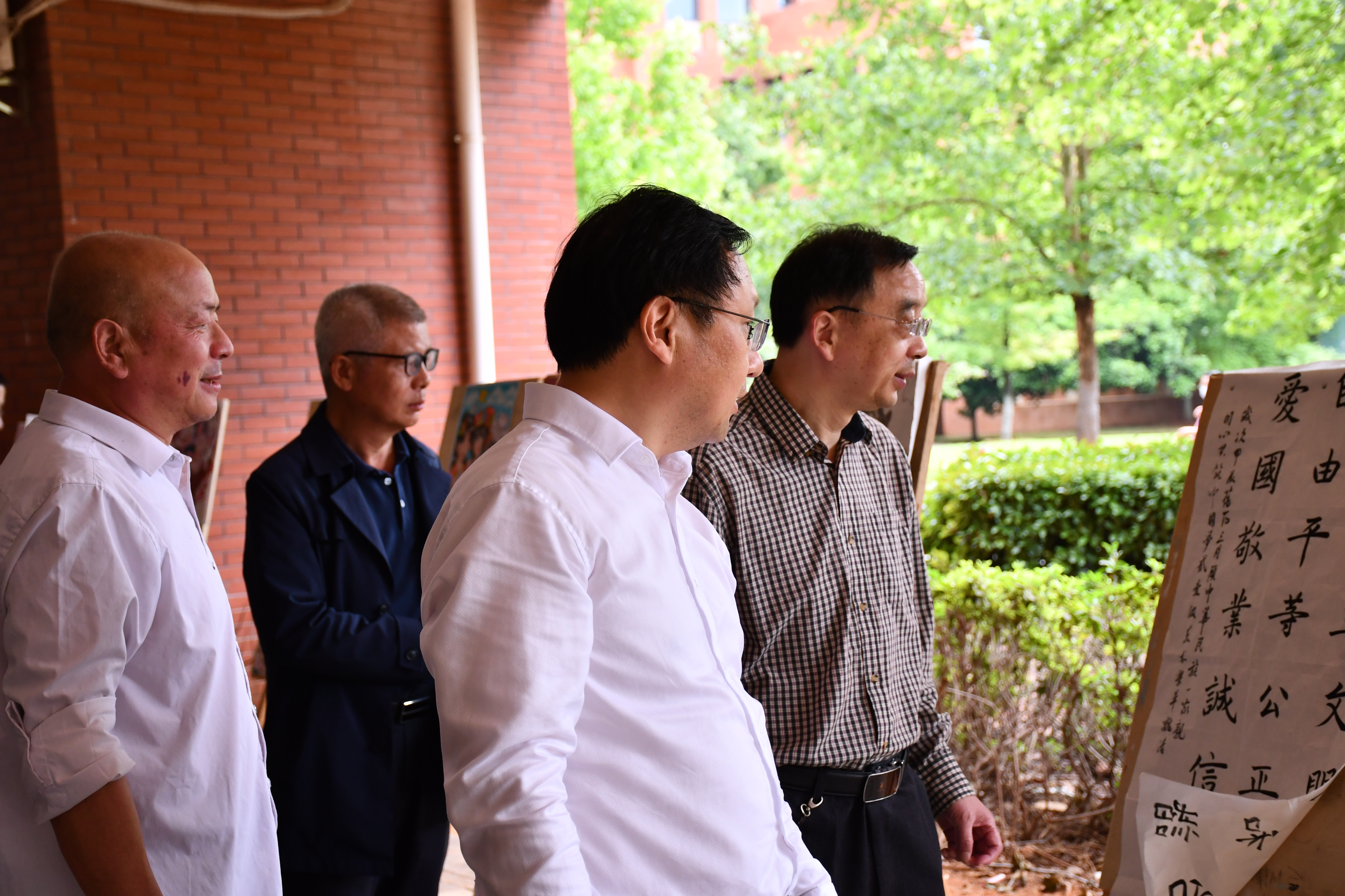 4月28日中午11:30,由党委组织部、宣传部主办,教育与艺术学部承办的“中华民族一家亲,同心共筑中国梦”为主题的手抄报与书画作品展在大学生活动中心广场举办,校长李开灿、党委书记杨邓红、常务副校长杨学斌一行应邀参加了本次作品展。