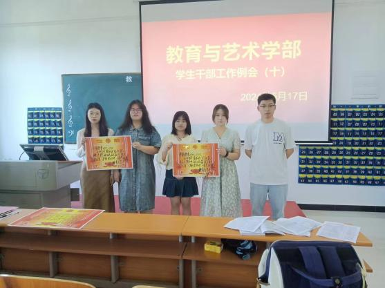 1.团学会按院团委的工作安排,认真开展“弘扬载人航天精神、砥砺奋进伟大征程”主题团日活动。由刘东辉老师给活动开展优秀班级颁发奖状并合影留存。