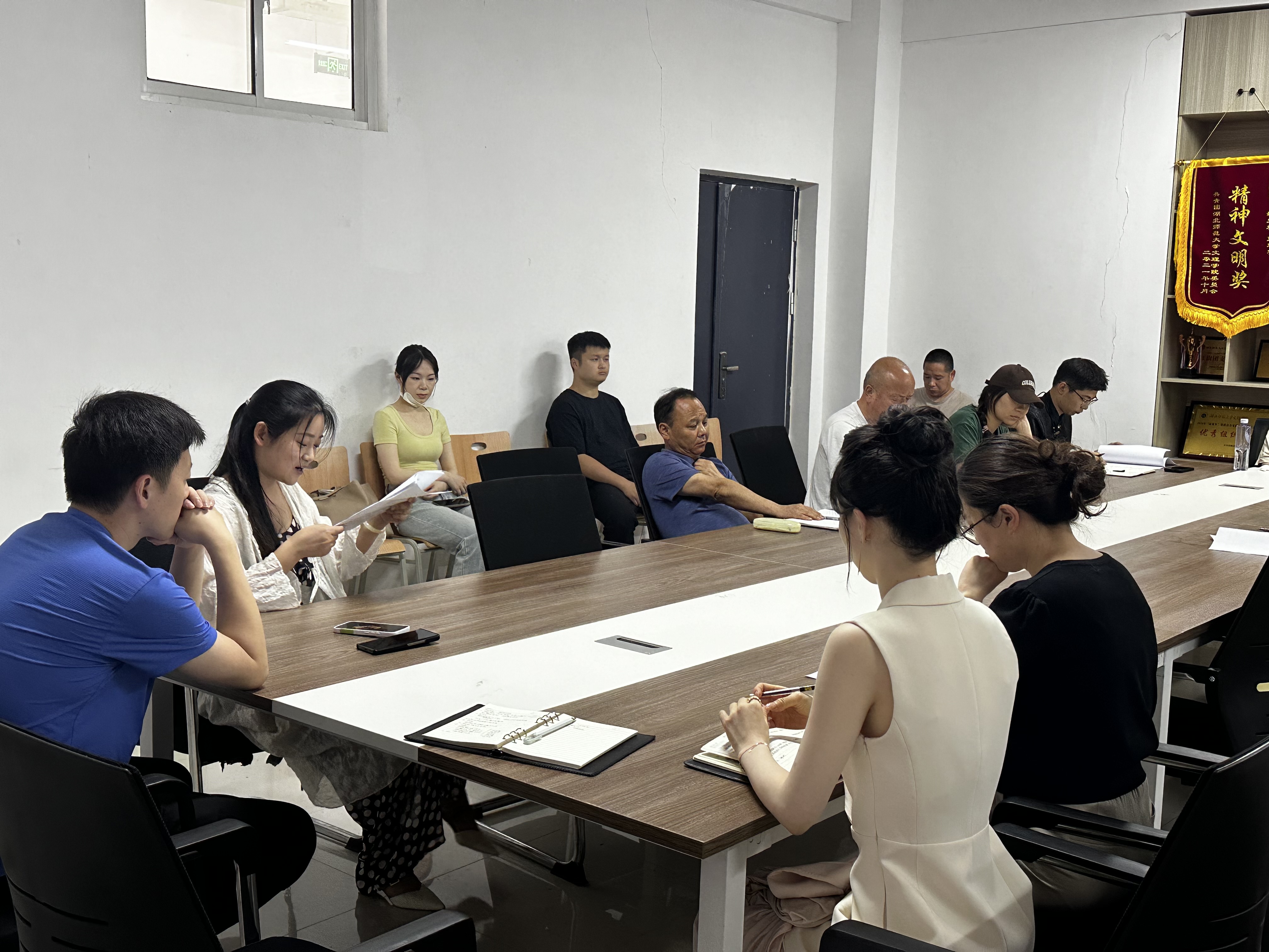 2024年6月3日中午12:00,教育与艺术学部在1号实验楼414会议室召开了全体教职工工作例会,本次会议共有以下四项议程:1.全体教职工集中开展政治理论学习,张卓老师和陈依恒老师领学;2.李先华书记安排了学生管理相关工作,重点强调了安全问题和毕业生相关工作;3.王文主任就学科竞赛、教科研活动、期末考试、中国国际大学生创新大赛项目申报等方面进行了6月份重点工作的部署;4.各专业教研室组织开展教研室活动。