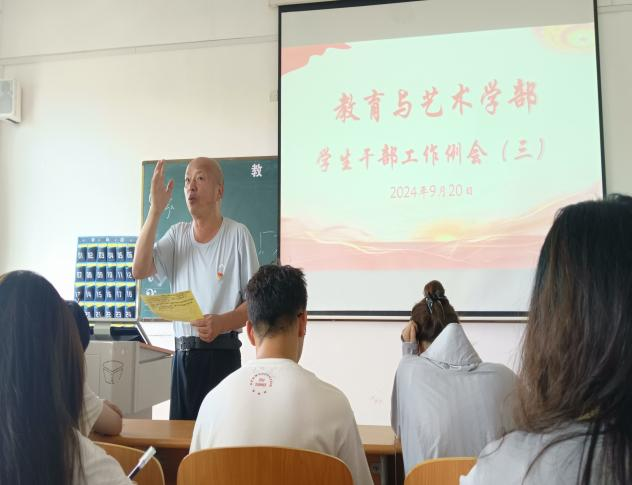 2024年9月20日中午12:00,在实验楼1-403多媒体教室组织召开学生干部工作例会。全体辅导员、团学会干部及各专业班级负责人与会。例会由总支书记李先华主持。