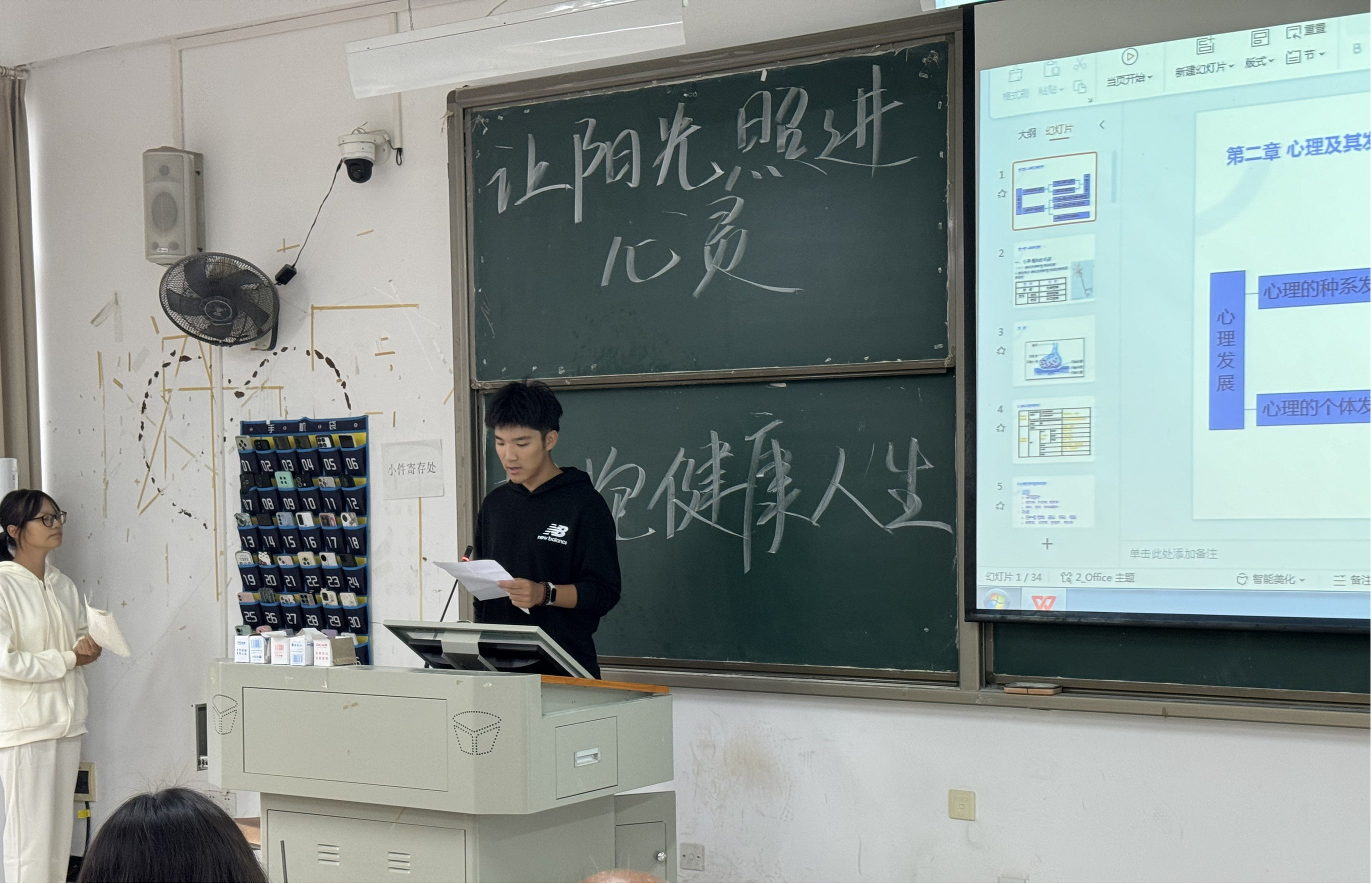 小学教育2201、2202班的向荷和范欣然同学带来的说课内容分别为《天地人》和《植树问题》,授课学生准备充分,PPT和课堂设计相结合,生动有趣,互动积极。随后前往小学教育2401、2402两个新生班级“普通心理学”的课堂,陈艺心同学演讲了《如何将身心健康完美结合》,威嘉航同学演讲了《心理健康,走向成功的坚实基石》,两位同学结合自身经历生动演绎了如何利用课堂所学对心理进行调节以及如何增强自身心理建设。