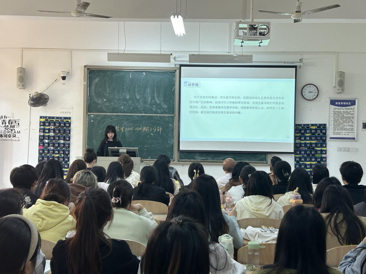 2205班刘欣琪同学带来的内容是《卖火柴的小女孩》,她从如何备好课、课程的设计、重难点的讲述、作业的布置等几方面进行说课,声音洪亮,吐字清晰,ppt结构完整,内容丰富,让同学们体会到了《卖火柴的小女孩》这个故事蕴含的深刻道理。
