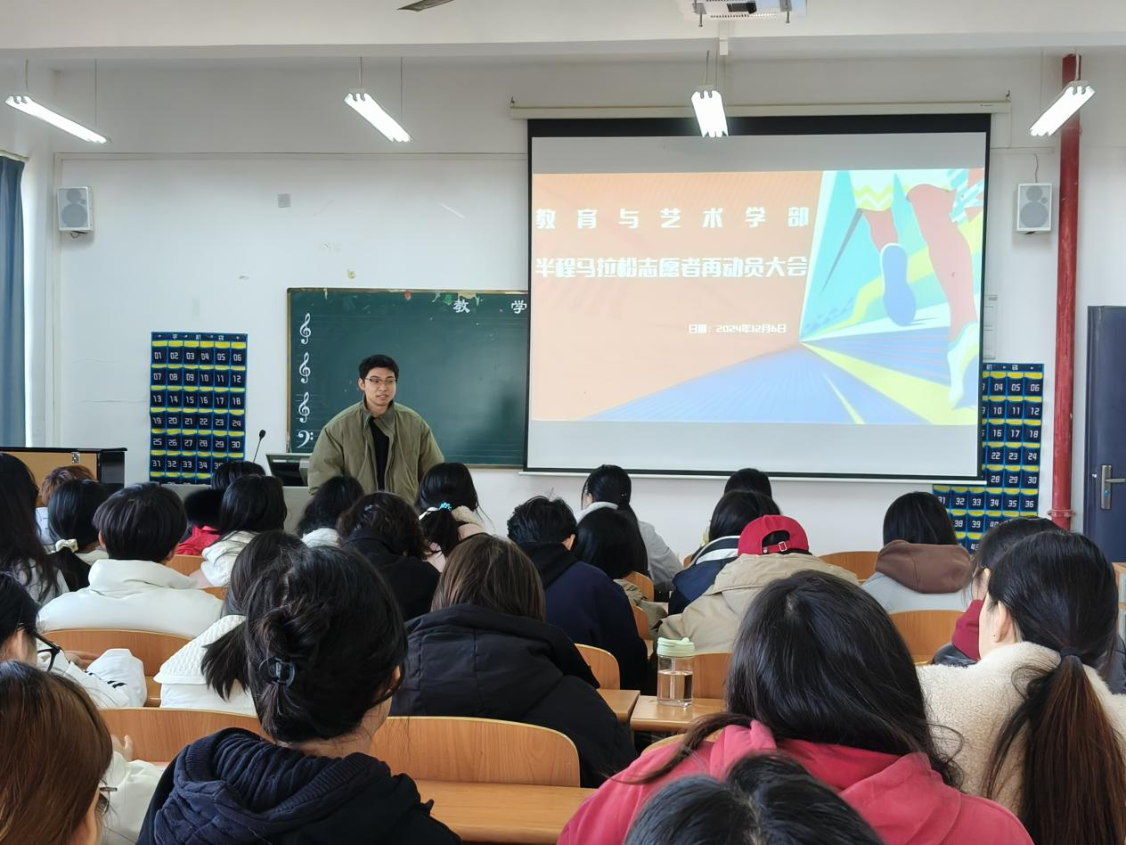 为进一步确保2024年冬季黄石半程马拉松比赛的顺利进行,加强我部青年志愿者的协同合作能力,引导他们明确志愿服务内容,端正志愿服务态度,根据院团委的工作要求2024年12月6日中午12:30,教育与艺术学部在实验楼1-401举办黄石半程马拉松志愿者再动员大会。