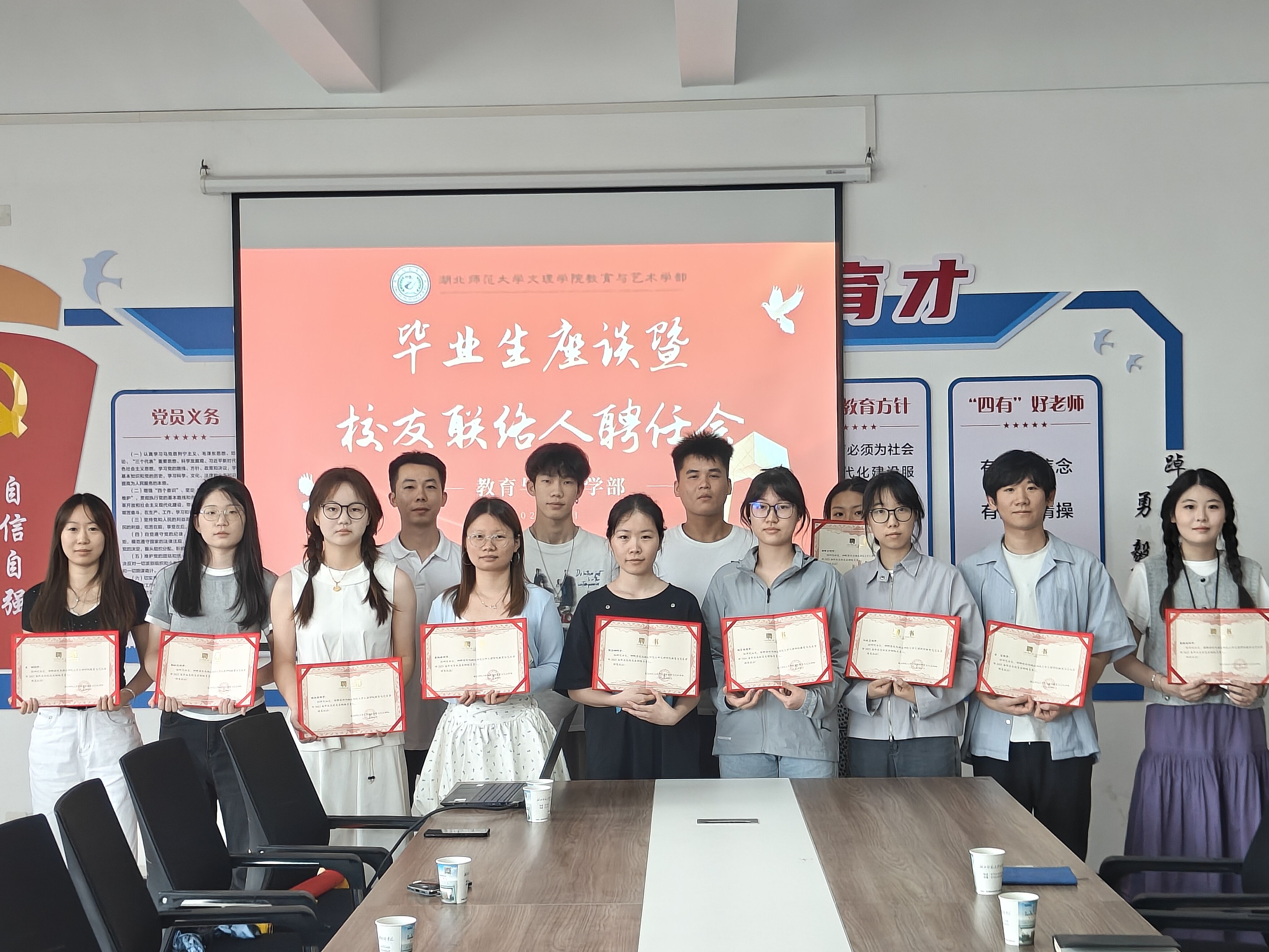 6月11日下午,教育与艺术学部在一号实验楼会议室召开毕业生座谈暨校友联络人聘任会,学部党总支副书记陈小龙、小学教育专业负责人王晓晶及毕业班辅导员、各专业学生代表参会。