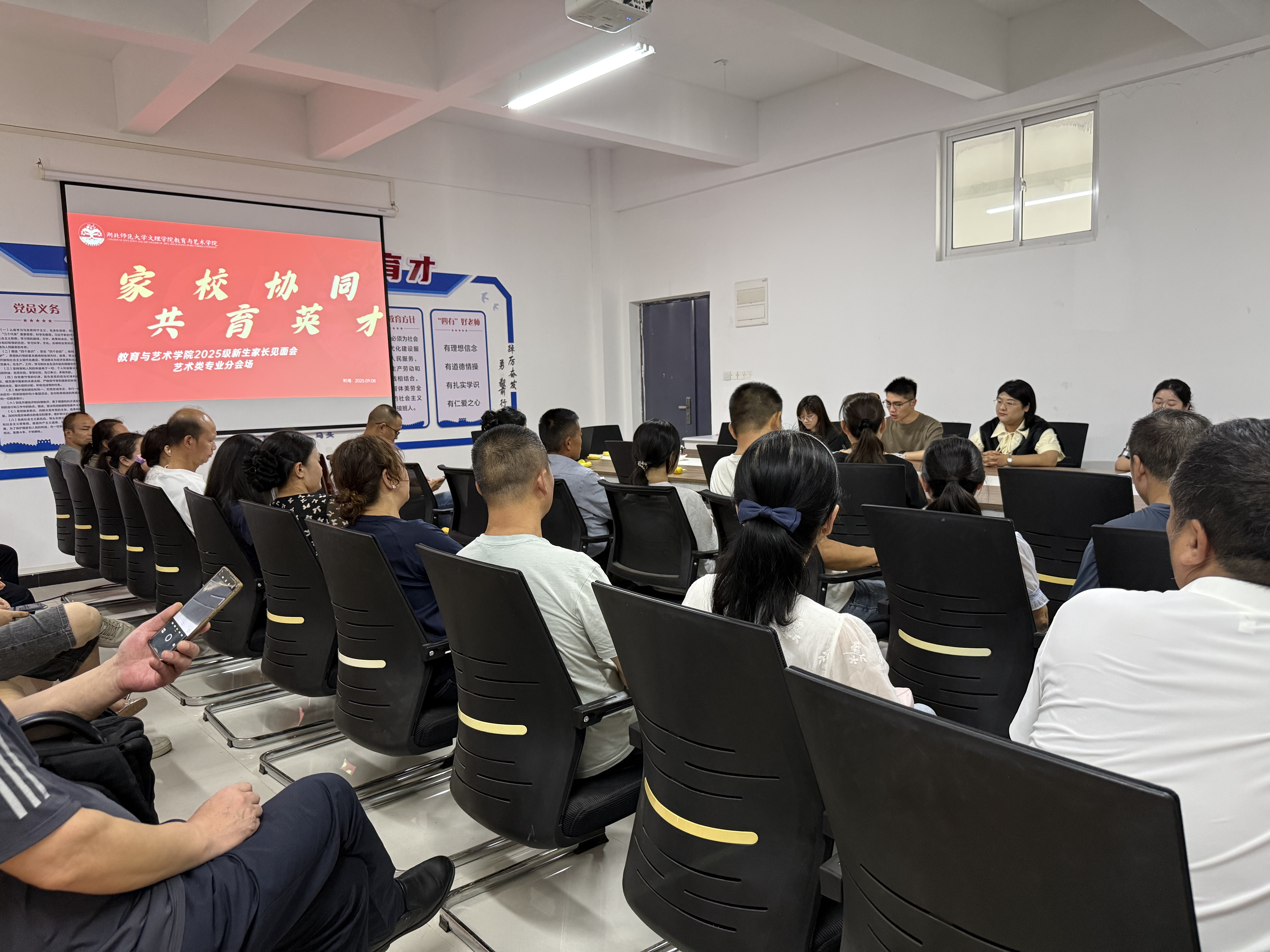 2025年9月8日中午12时,米乐官方网页版_米乐(中国)教育与艺术学院以“主会场+分会场”“线下+线上直播”模式,在图书馆报告厅举行2025级新生家长见面会,获家长热烈响应。教艺学院院长王文教授、副院长胡蕾、党总支副书记陈小龙、各专业负责人及资深教师,全体辅导员参加会议。