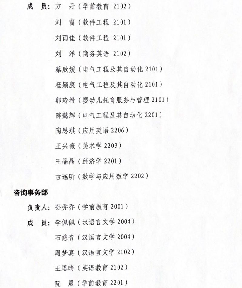 根据学生工作部招生办公室《关于开展第一届“招生宣传媒体中心”招新的通知》文件要求,招生办于近期开展了第一届“招生宣传媒体中心”学生干部选拔工作,经本人报名、面试评审、试用考核,现将第一届招生宣传媒体中心成员名单公示如下: